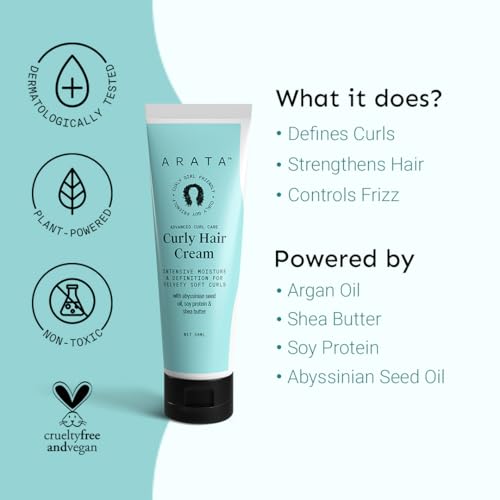 • RICH & CLEAN FORMULATION FOR HEALTHY HAIR: Enriched with shea butter soy protein argan oil abyssinian seed oil and hydrolyzed corn protein Arata Curl Hair Cream is rich in vitamins amino acids and fatty acids. Shea butter moisturizes and reduces frizz soy