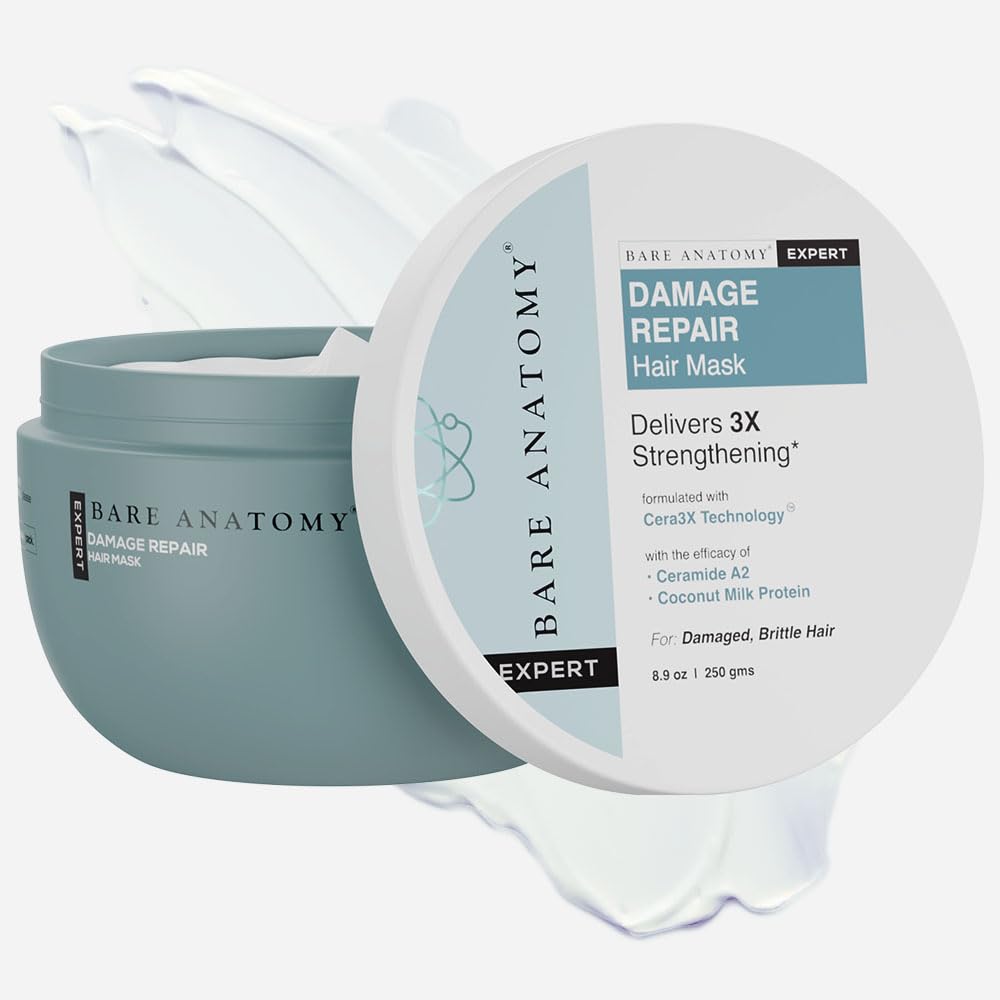 Bare Anatomy Damage Repair Hair Mask | 3x Strengthening Powered By Ceramide A2 & Coconut Milk Protein | Smoothening Hair | Hair Mask For Dry & Frizzy Hair | Sulphate & Paraben Free | Women & Men250g