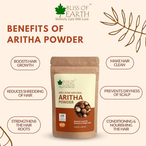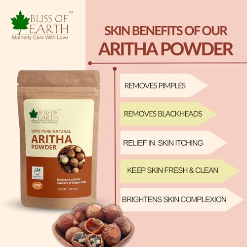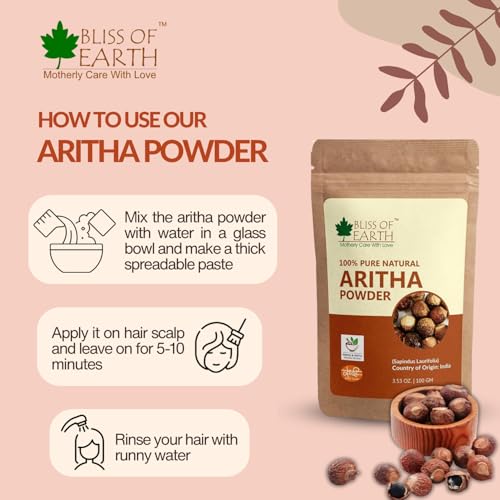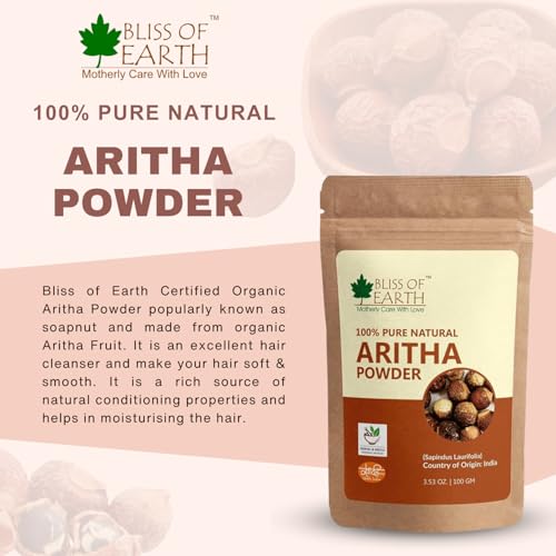 Bliss of Earth100% Pure Reetha Powder | 100GM | Aritha Powder |Natural & Chemically Free Hair Cleanser | Gorgeous & Silky Hair |