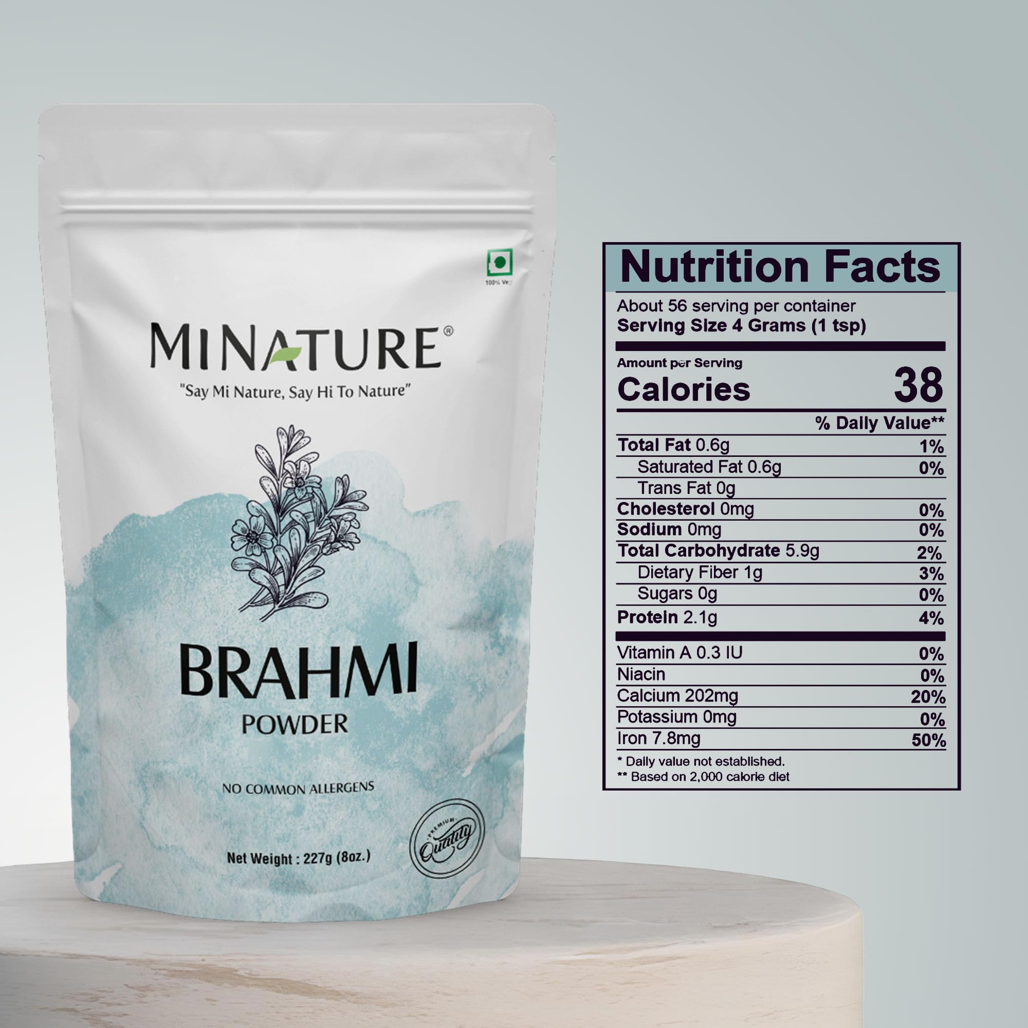 Mi Nature Brahmi Powder (Bacopa Monnieri) - 227 g / 8 OZ / 1/2 lbUnlock the secret to luscious locks with Mi Nature's Brahmi Powder! Hair Growth Booster: Packed with natural goodness this Brahmi powder promotes hair growth from root to tip. ð 100% Pure: Our Brahmi powder is pure and Natural ensuring you get the best for your hair. ð Natural Brilliance: Enhance the natural shine and brilliance of your hair with the power of Brahmi. ð«227g of Goodness: Generous 227g / 8 OZ / 1/2 lb pack to keep your hair care routine stocked and ready. Easy to Use: Mix into your favorite hair mask oil or DIY hair care recipe for a spa-like treatment at home. ð¡Radiate confidence with Mi Nature's Organic Brahmi Powder - your key to vibrant healthy hair!