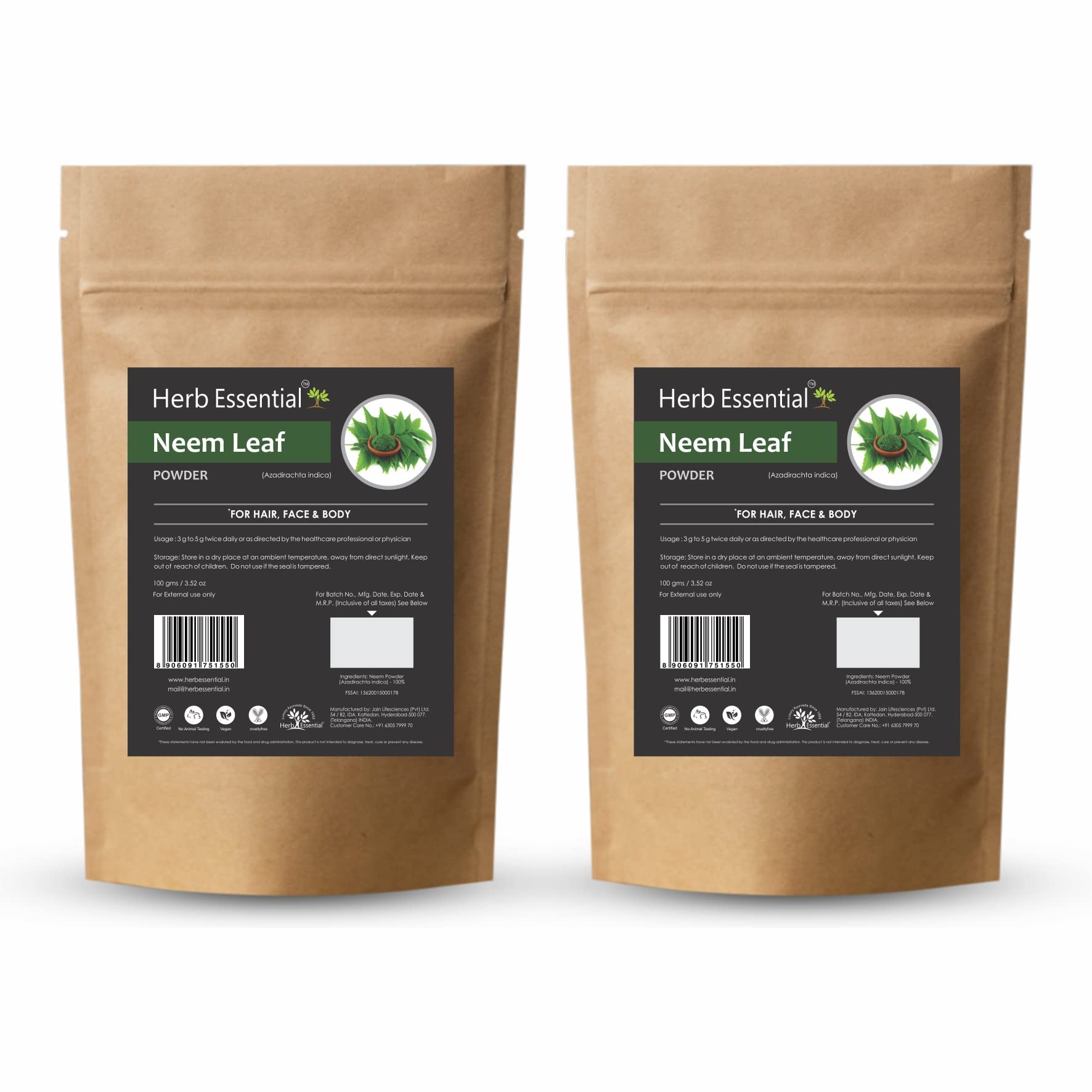 Herb Essential Neem Leaves Powder for Pimple-free Clear Skin 100 g (pack of 2)