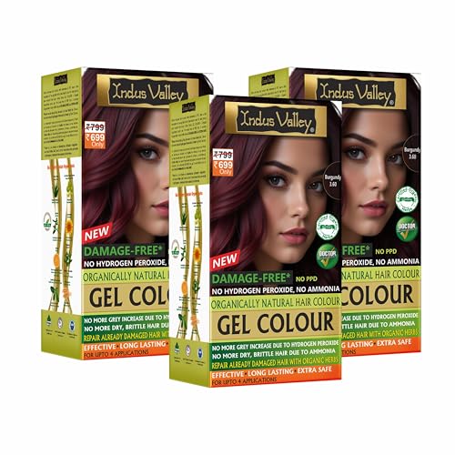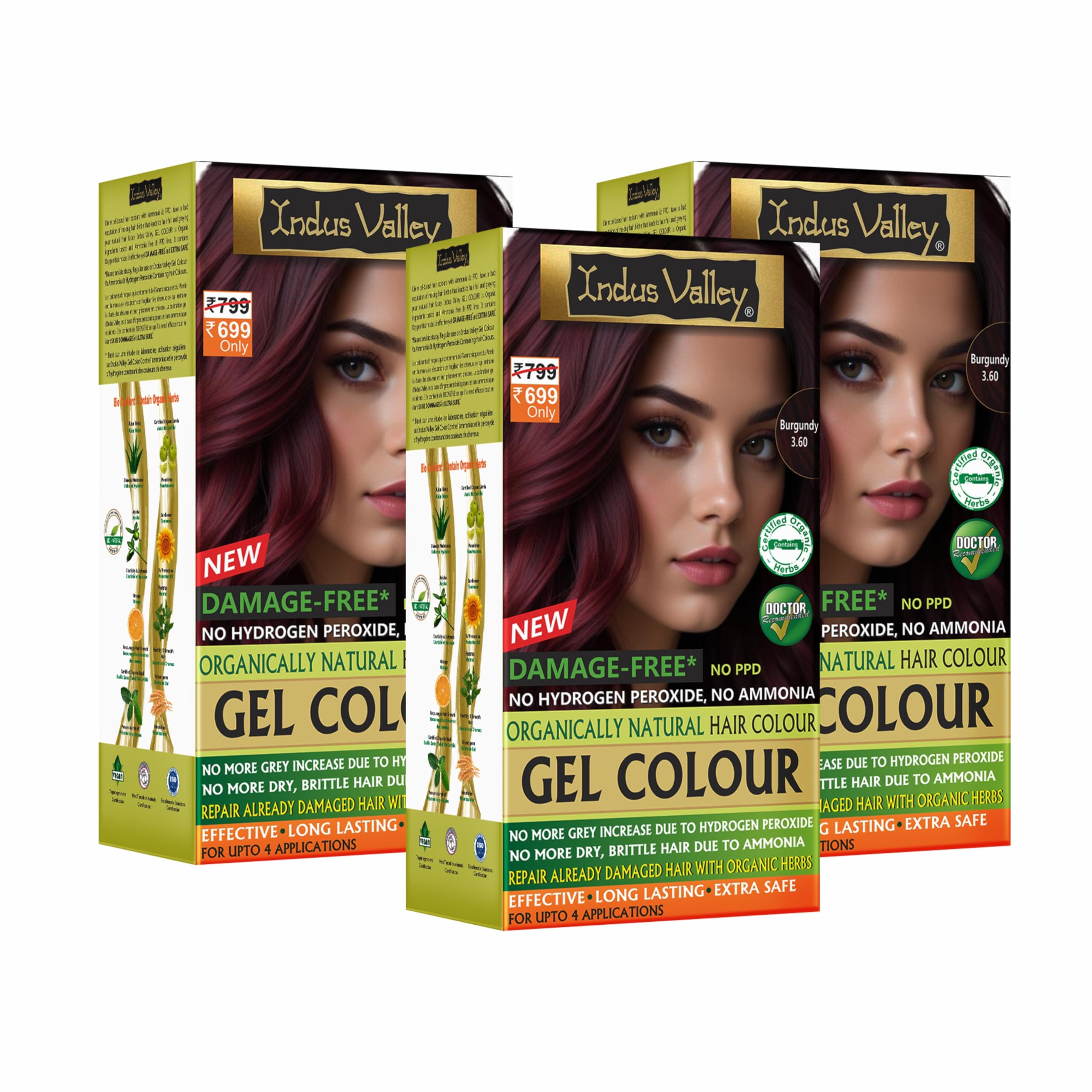 INDUS VALLEY Damage Free Natural Gel Hair Colour for Women | Ammonia & PPD Free Organic Hair Colour with 100% Grey Coverage, Long Lasting Conditioning Hair Color | Burgundy 3.6 - Pack of 3 (3x220 = 660 ml)