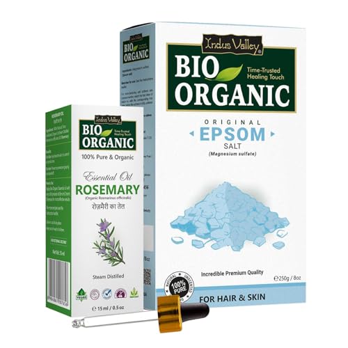Indus Valley Bio Organic Epsom Bath Salt- 100% Pure Natural & Organic - 250 g Relieves Muscle Aches and Pain with Rosemary Essential Oil 100% Pure for Skin, Hair Care - 15 ml