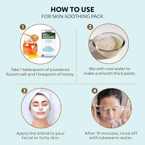 • Organic Epsom Salt: This 250g pack contains 100% pure and organic Epsom salt (magnesium sulphate) for hair and skin care.