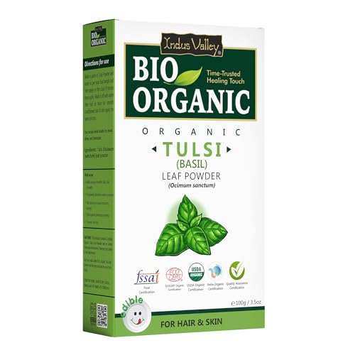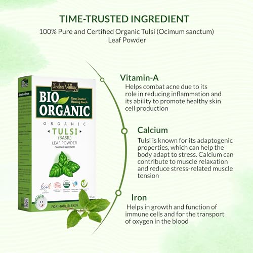 INDUS VALLEY Tulsi Powder 100% Organic and Natural for Skin and Hair Care set of 2 (100g)