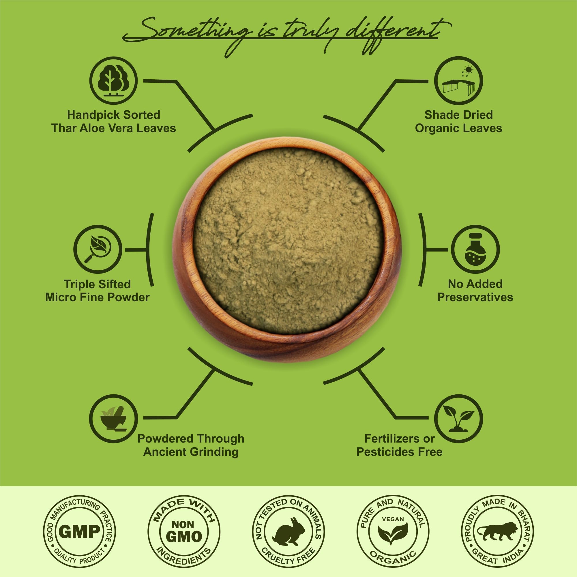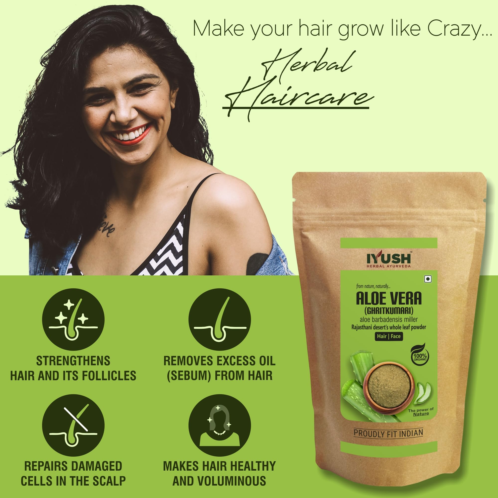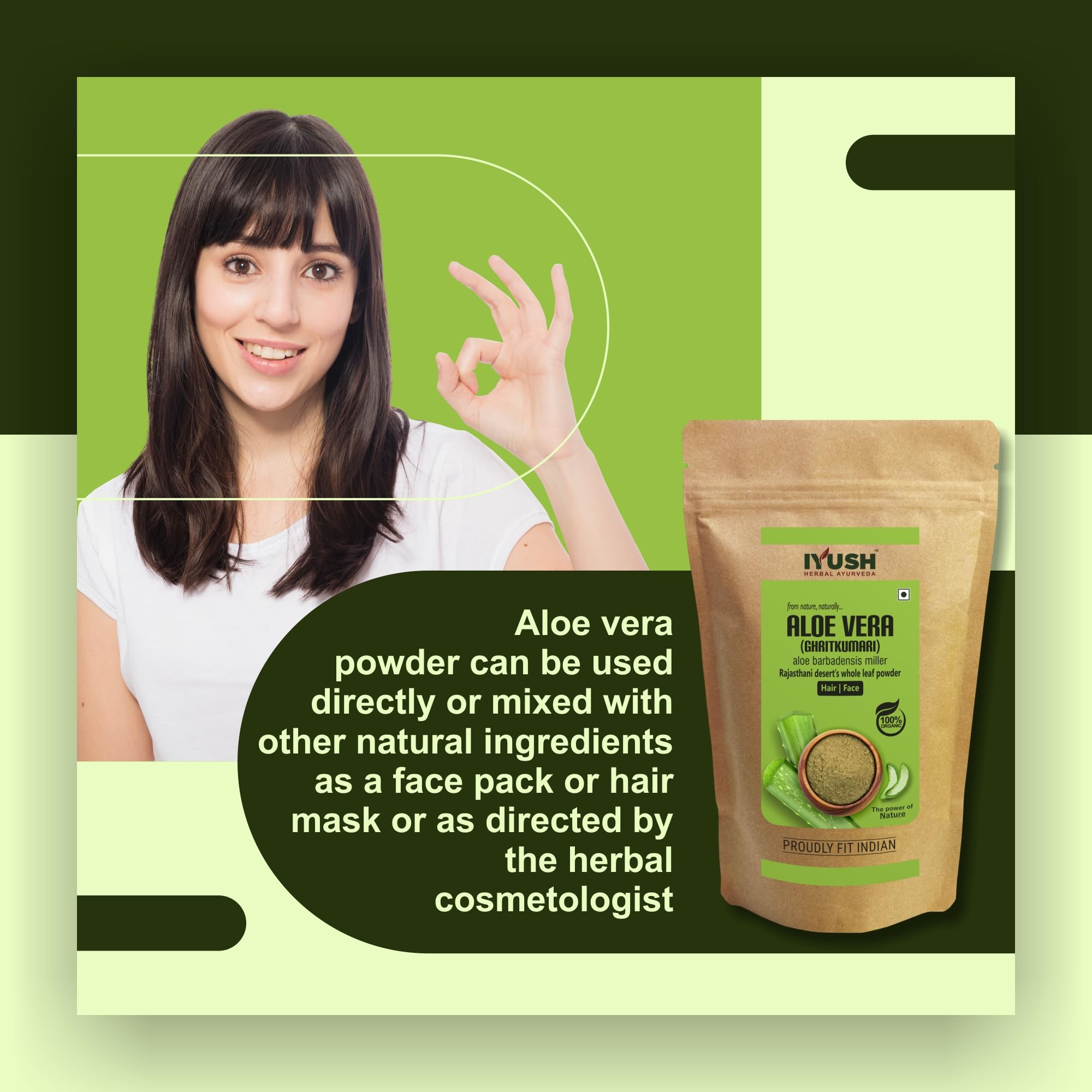 Aloe Vera also known as Aloe barbadensis miller is a natural herb that has been used for centuries in Ayurveda for numerous health skin and hair benefits. It is an organic natural powder made from shade-dried aloe vera leaves found in the Thar region of Rajasthan which contains the highest active nutrients grown naturally without any harmful chemicals or pesticides or fertilizers.