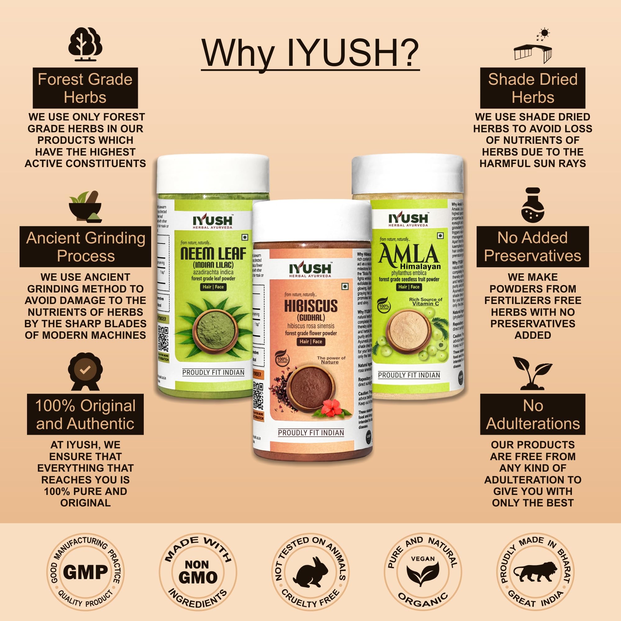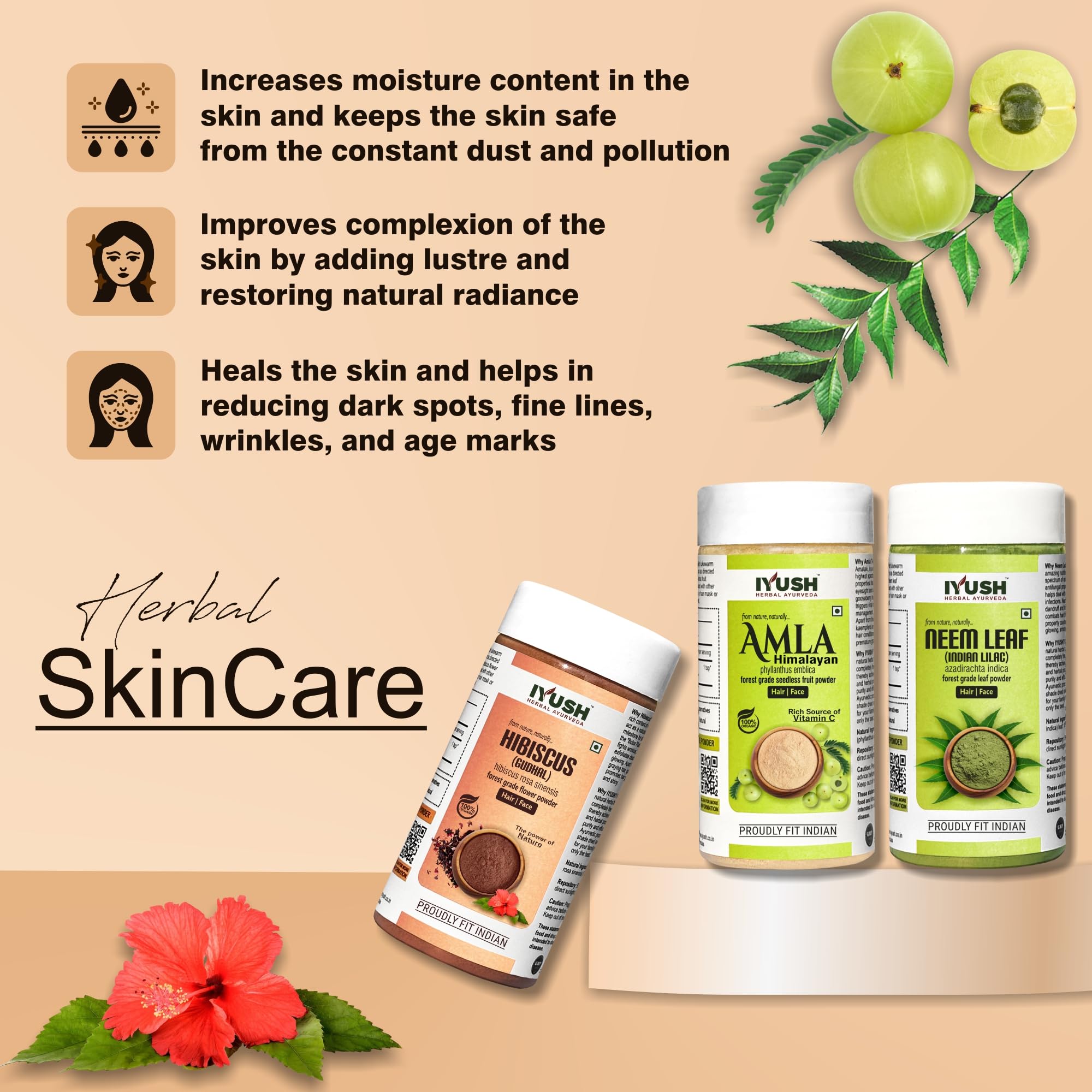 The Combo of Herbal powders is a combination of natural herbs that have been used since ages for a variety of skin and hair care regimens. It is an organic natural combo made from shade-dried wild forest grade herbs that contain the highest active nutrients grown naturally without any harmful chemicals or pesticides or fertilizers.