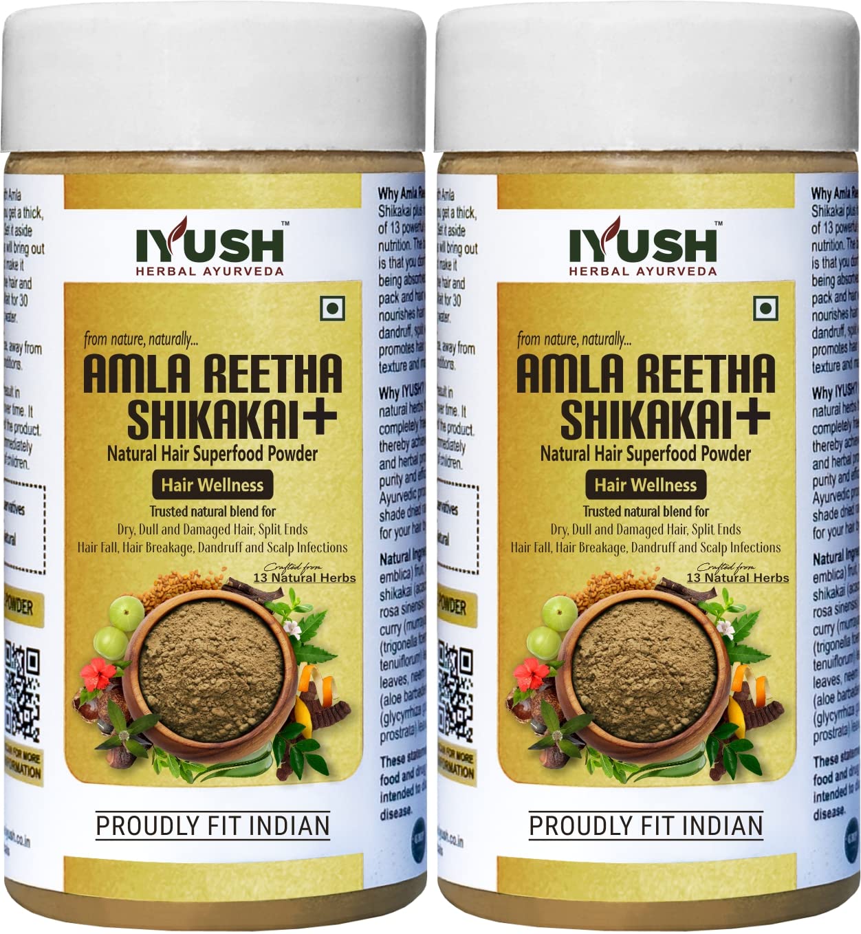IYUSH Herbal Ayurveda Amla Reetha Shikakai 13 Herbs In One Hair Pack Powder For Hair Growth And Daily Natural Hair Wash - (pack of 2) 100 gm each
