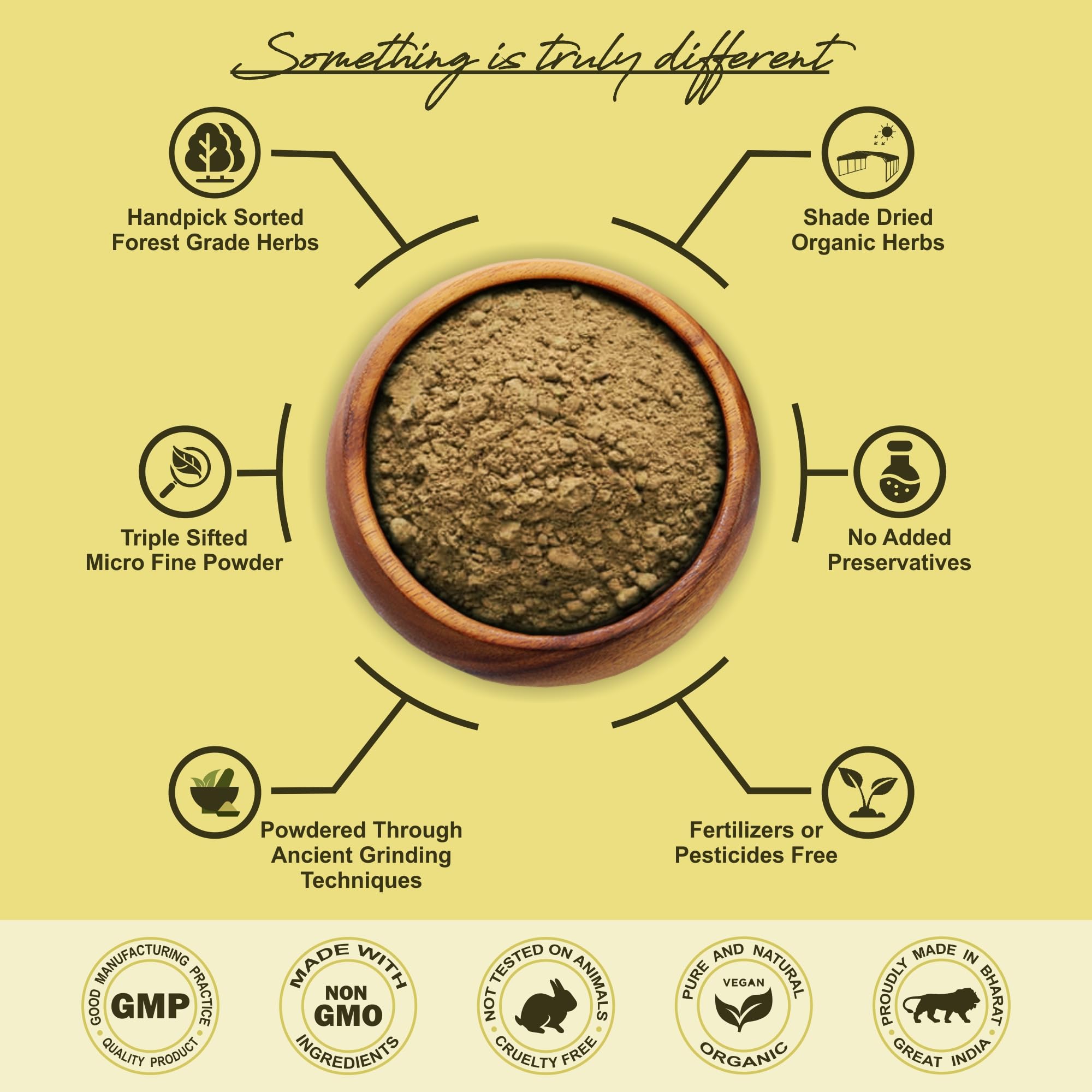 GOOD FOR HAIR AND SCALP : Amla Reetha Shikakai Plus Powder contains naturally occurring substances that give an optimal nutrition to the hair and promote hair growth relieve dandruff and itchy scalp and make hair shiny strong and bouncy.