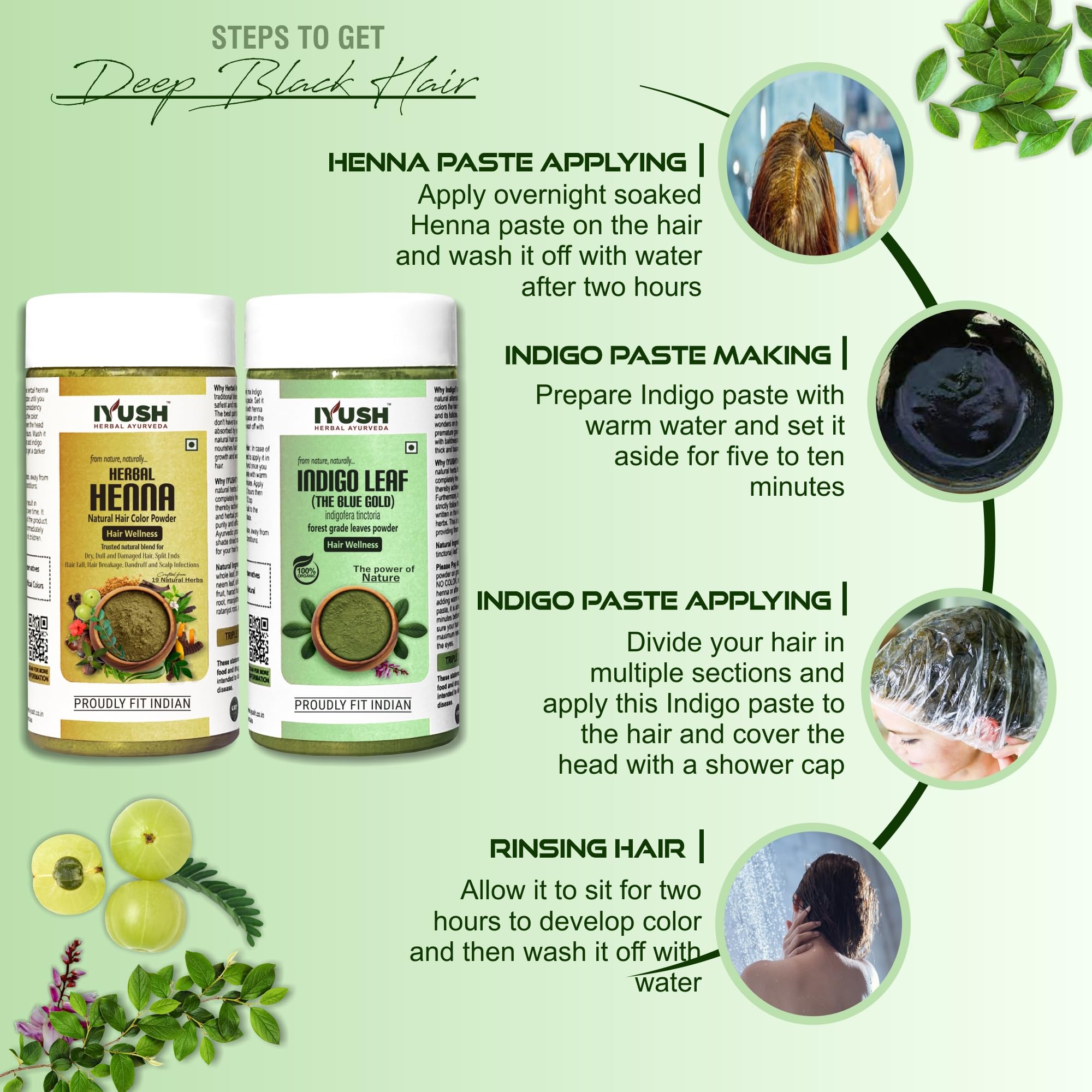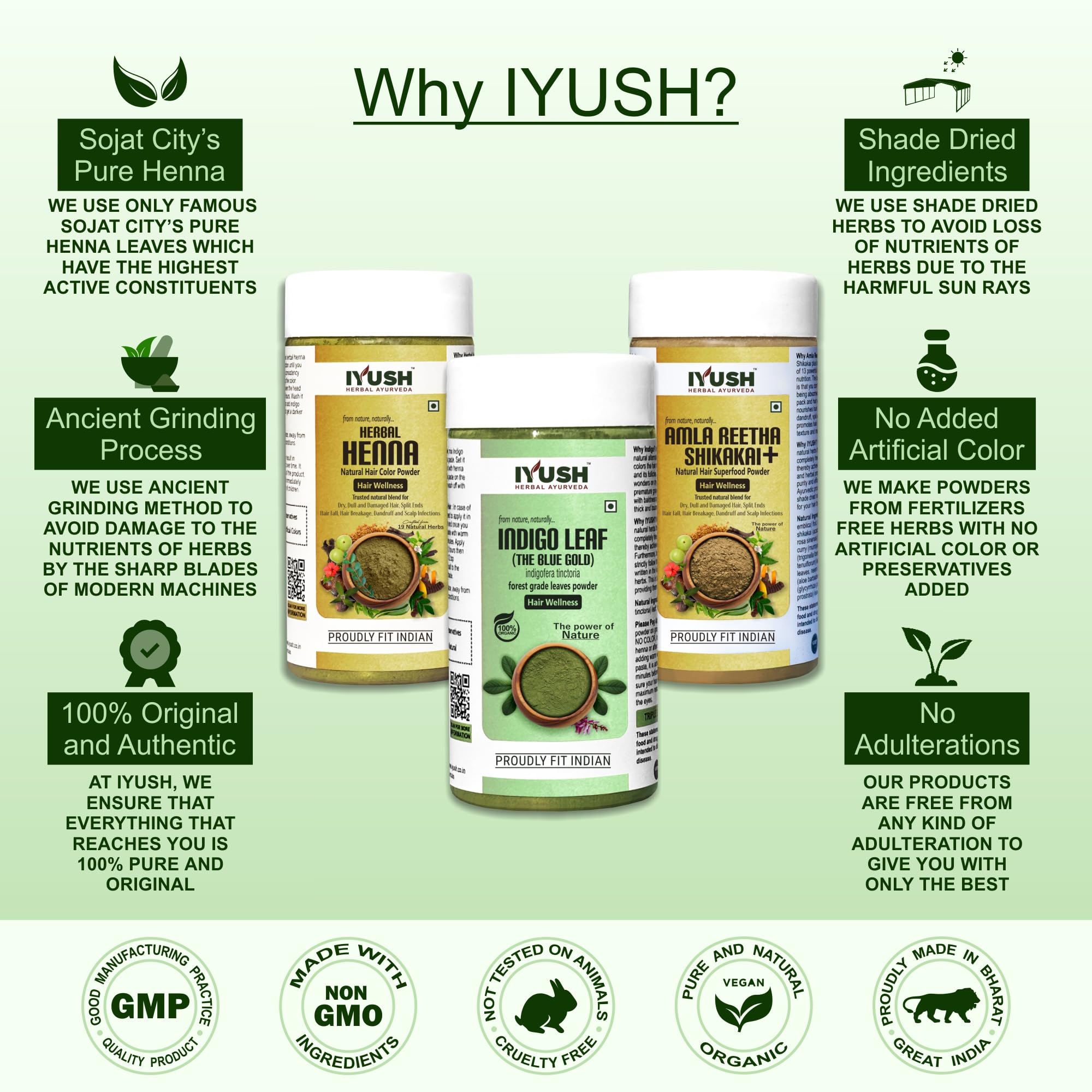 IYUSH Herbal Ayurveda Amla Shikakai Reetha Powder for Hair with 13 Herbs plus Indigo Powder and Herbal Henna Powder for Hair Colour 300gm | Herbal Hair Wash Powder | Hair Volume Powder | 100gm each