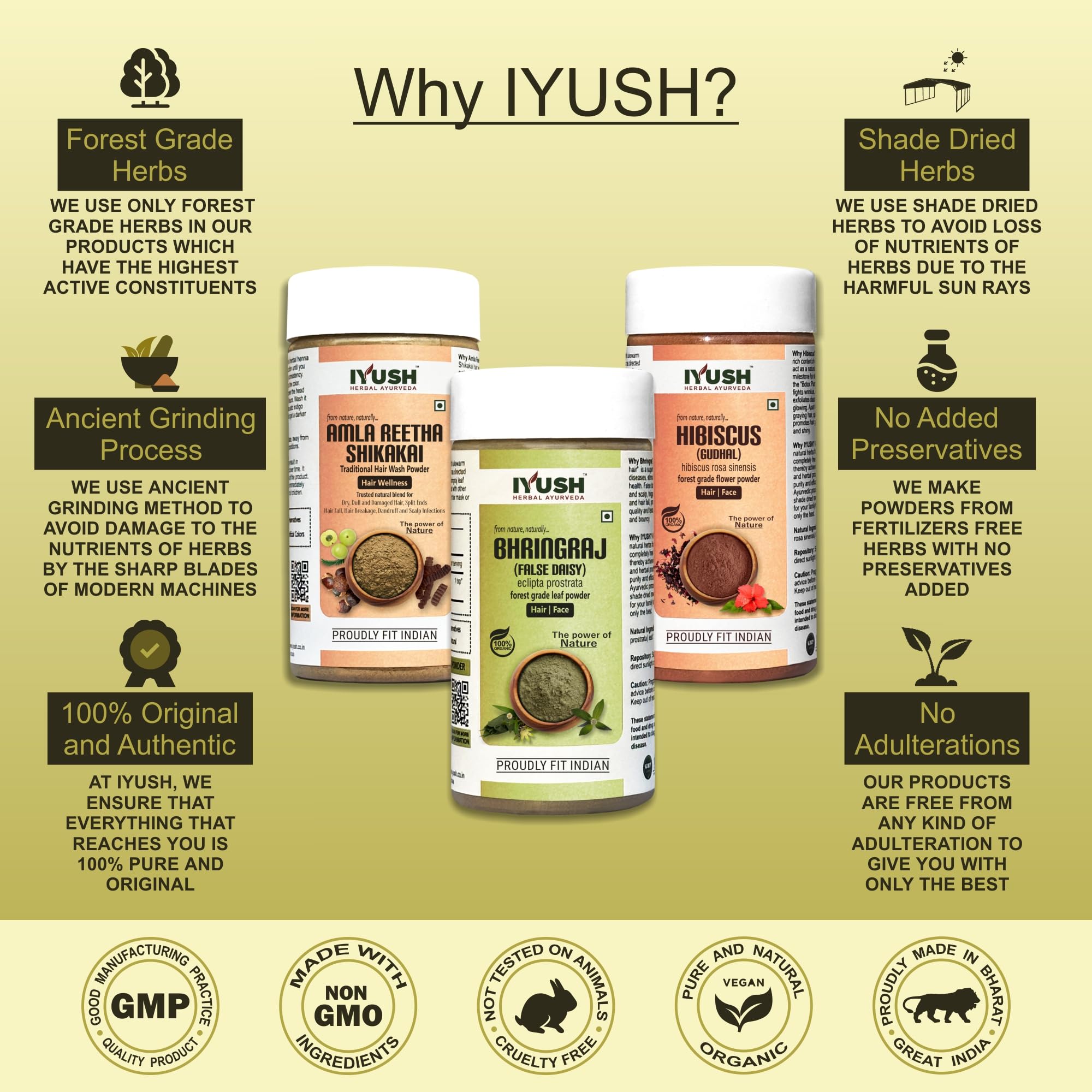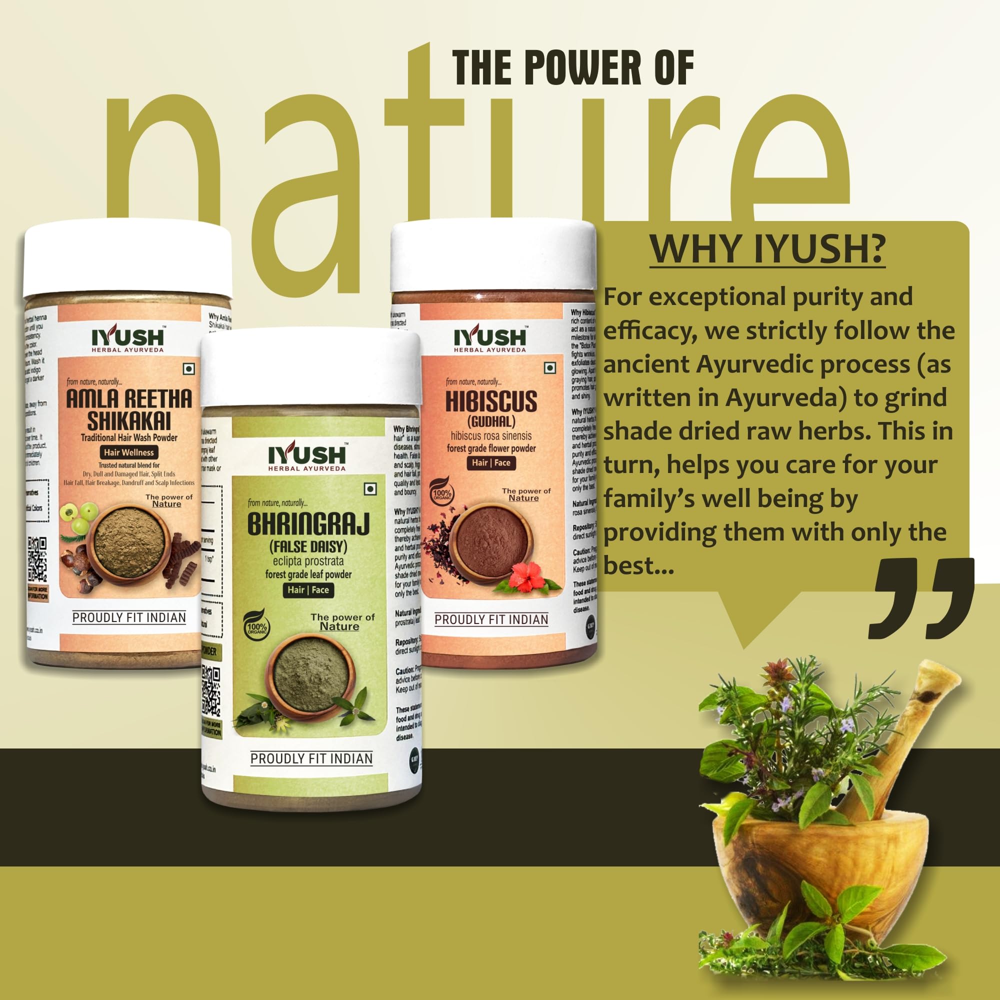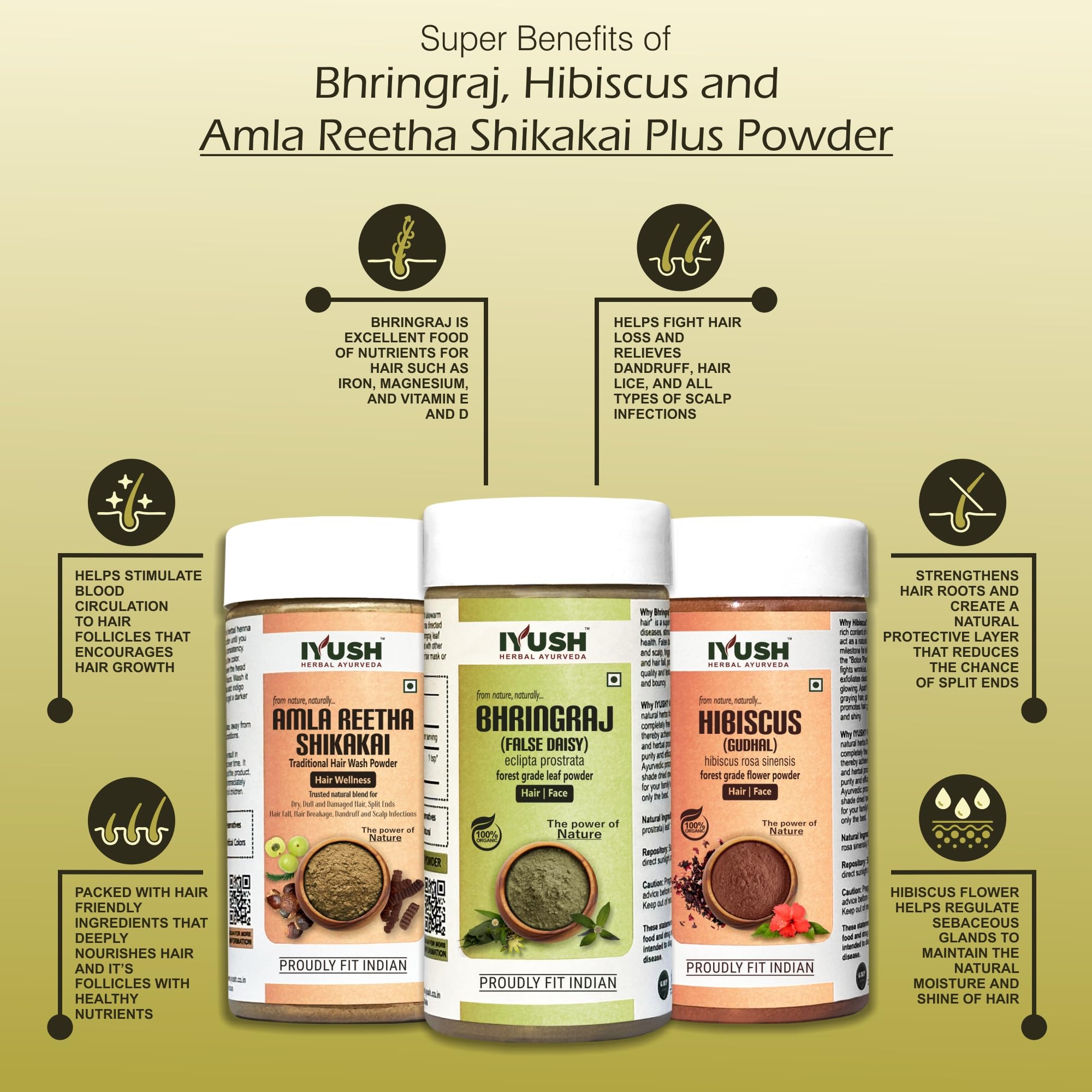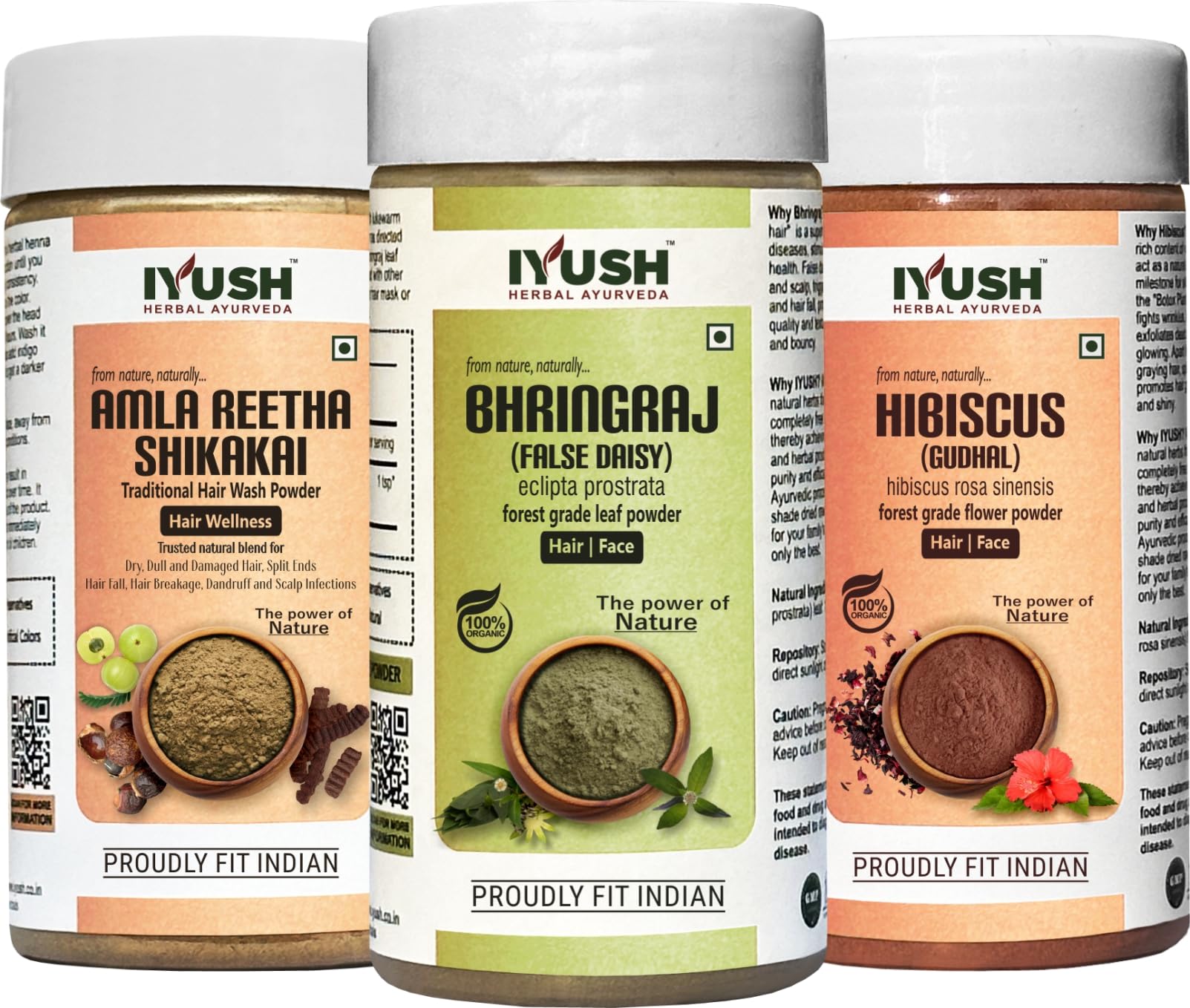 The Combo of Herbal powders is a combination of natural herbs that have been used since ages for a variety of skin and hair care regimens. It is an organic natural combo made from shade-dried wild forest grade herbs that contain the highest active nutrients grown naturally without any harmful chemicals or pesticides or fertilizers.