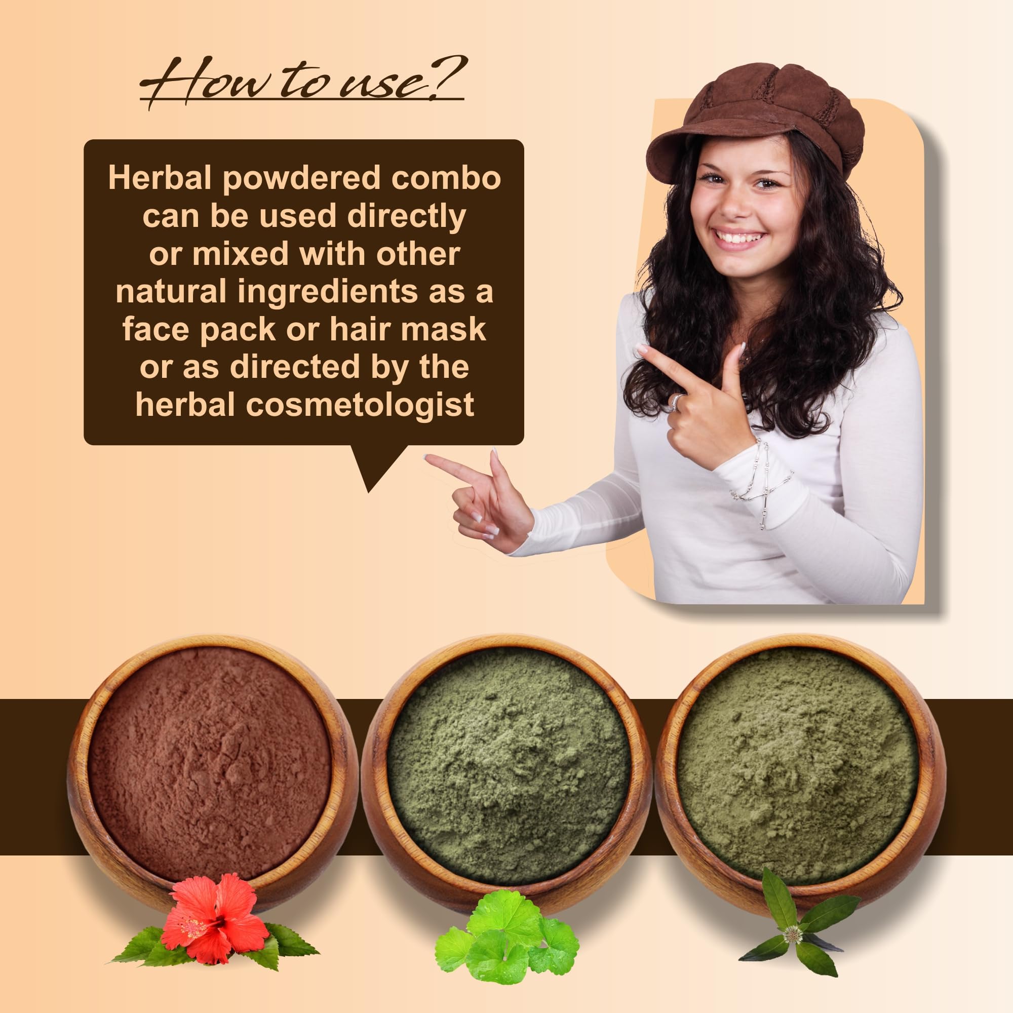 The Combo of Herbal powders is a combination of natural herbs that have been used since ages for a variety of skin and hair care regimens. It is an organic natural combo made from shade-dried wild forest grade herbs that contain the highest active nutrients grown naturally without any harmful chemicals or pesticides or fertilizers.