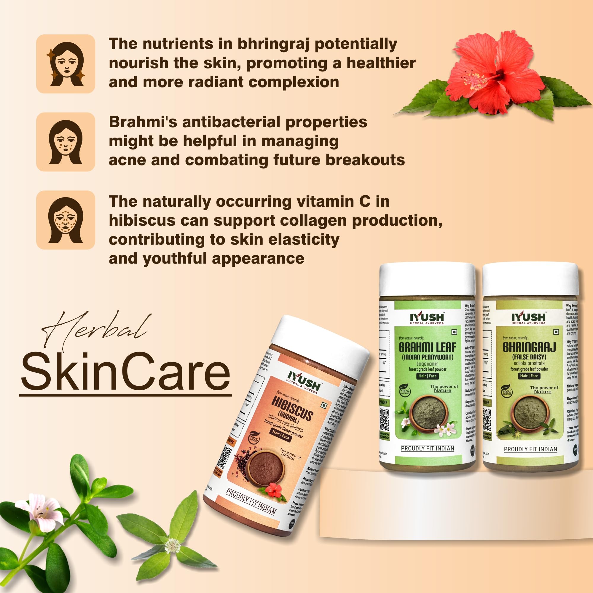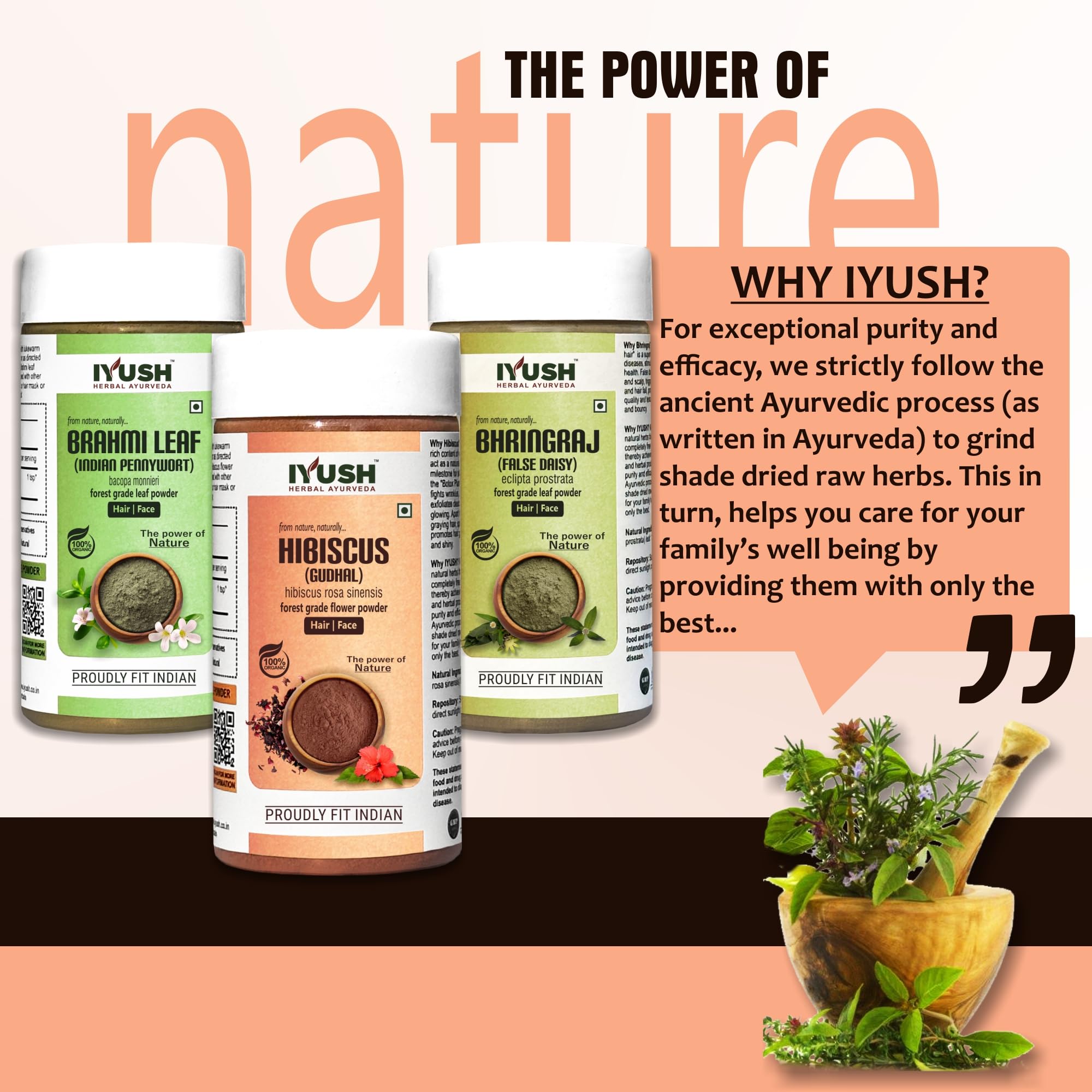 IYUSH Herbal Ayurveda Brahmi Bhringraj Hibiscus Powder 750gm | Brahmi Powder Bhringraj Powder and Hibiscus Powder | Hair Volume Powder | Skin Care & Hair Care | (250gm each)