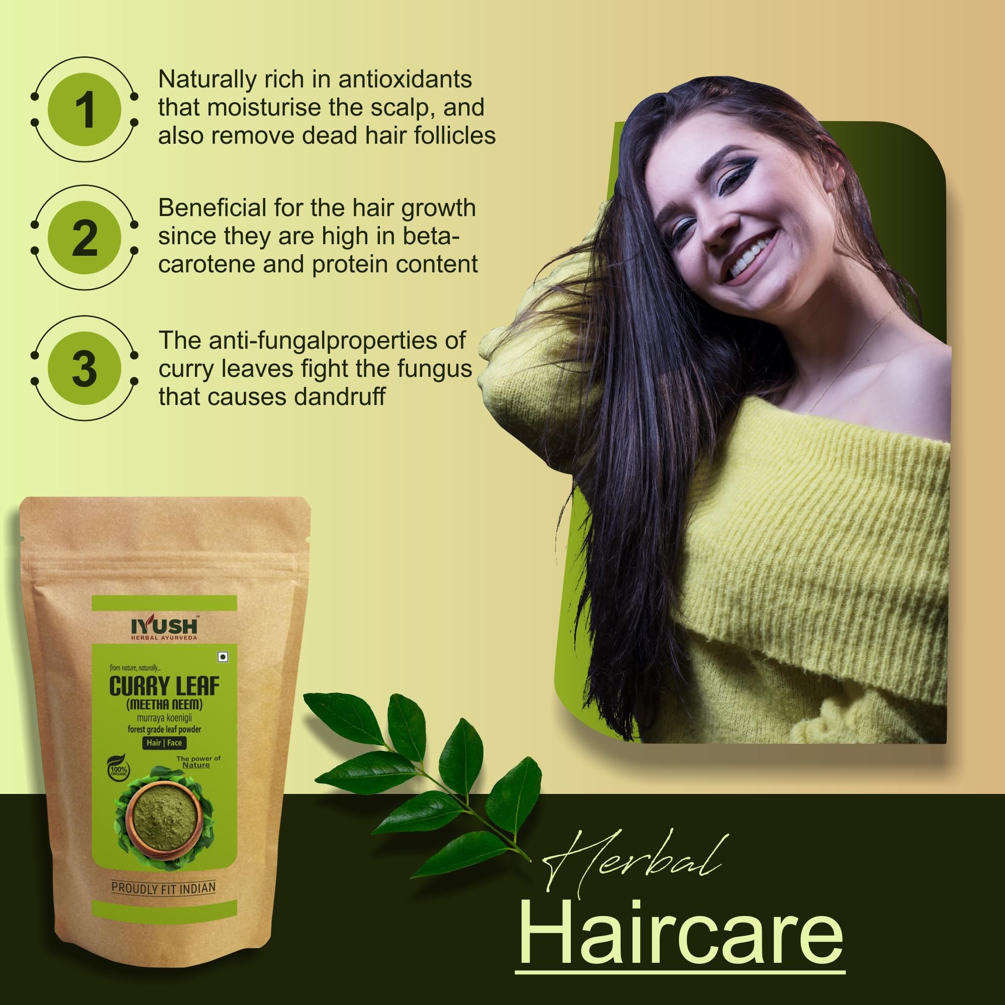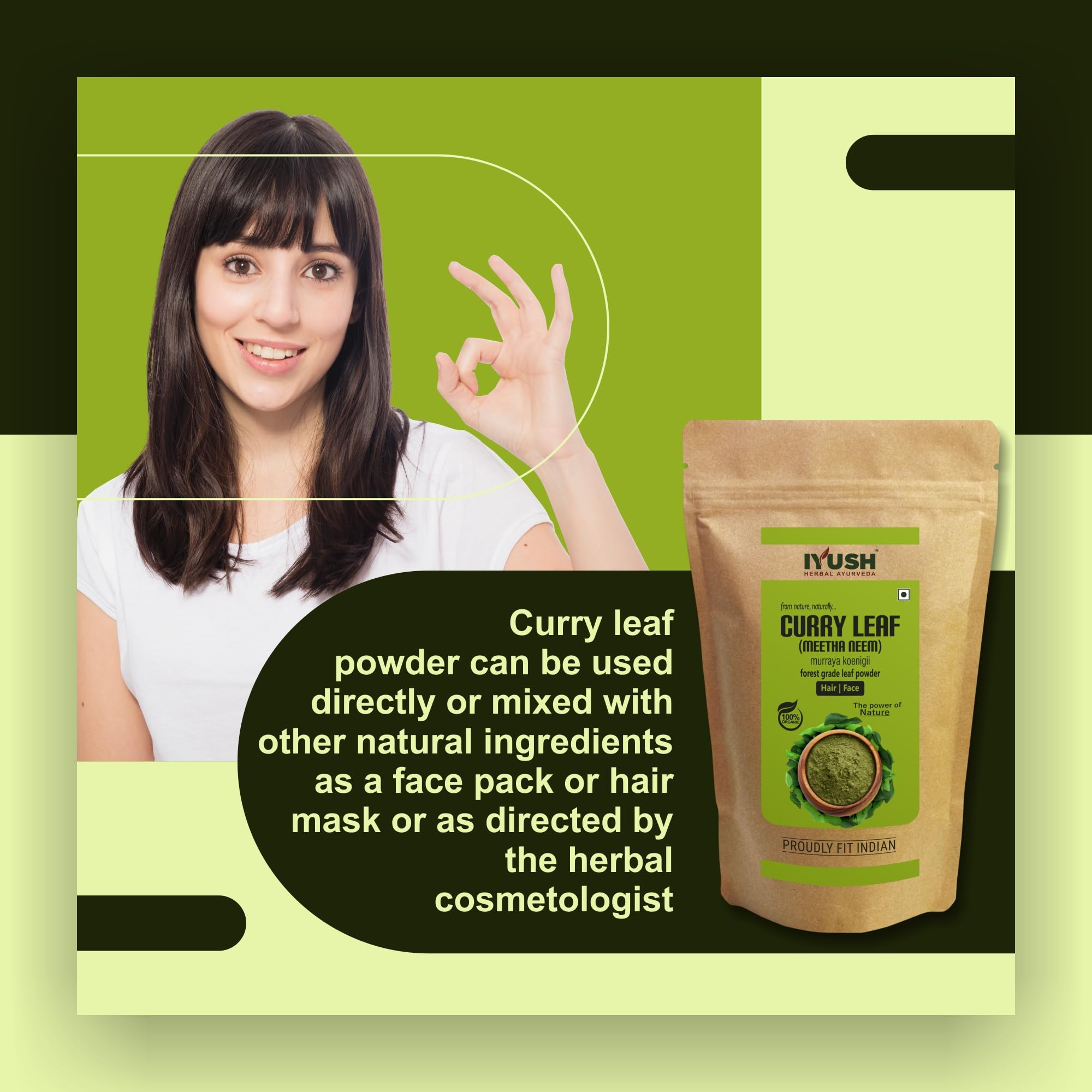 Curry also known as Murraya koenigii is a natural herb that has been used for centuries in Ayurveda for numerous health skin and hair benefits. It is an organic natural powder made from shade-dried wild forest grade Curry leaves that contain the highest active nutrients grown naturally without any harmful chemicals or pesticides or fertilizers.