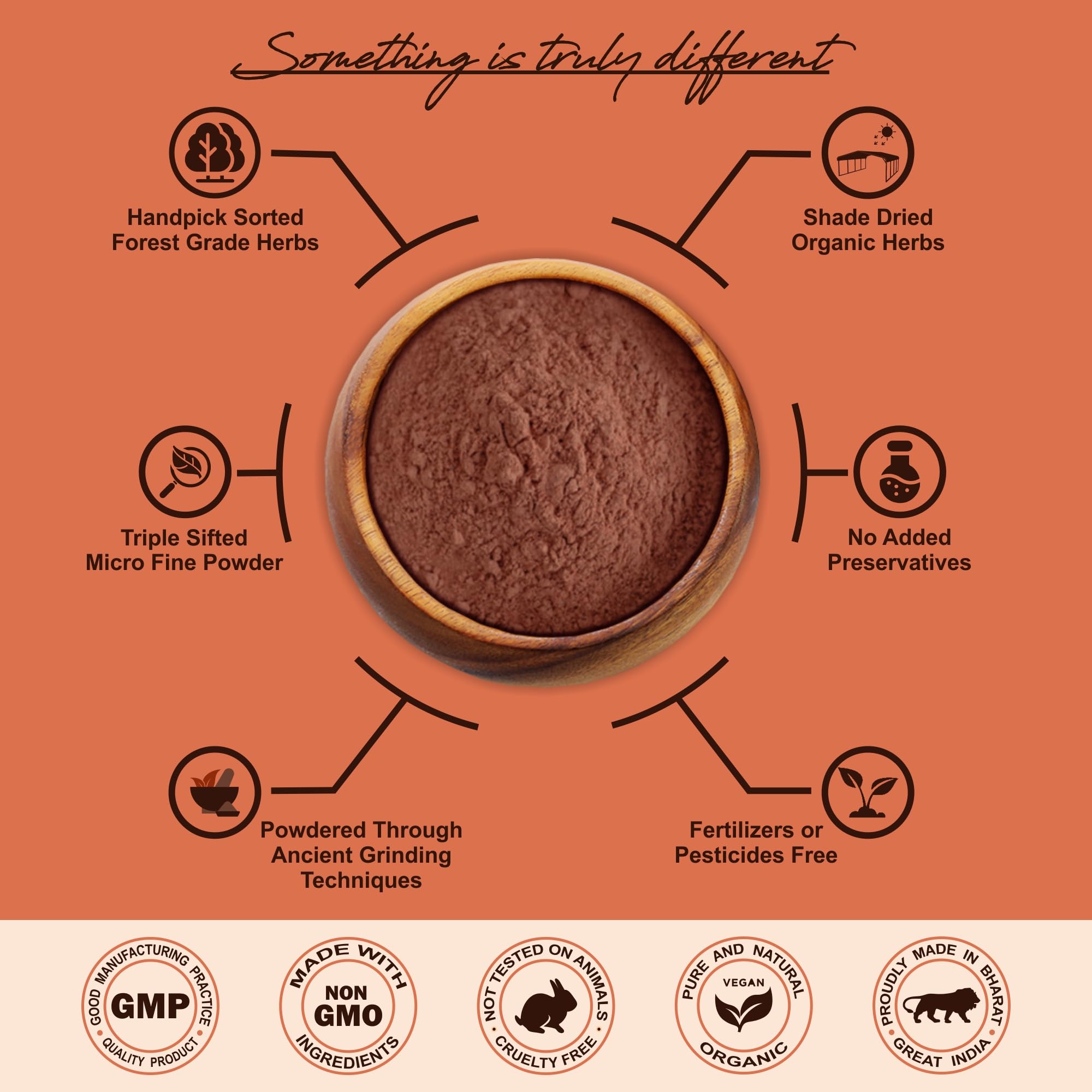Hibiscus or Gudhal also known as Hibiscus rosa-sinensis is a natural herb that has been used for centuries in Ayurveda for numerous health skin and hair benefits. It is an organic natural powder made from shade dried wild forest grade Hibiscus flower that contain the highest active nutrients grown naturally without any harmful chemicals or pesticides or fertilizers.