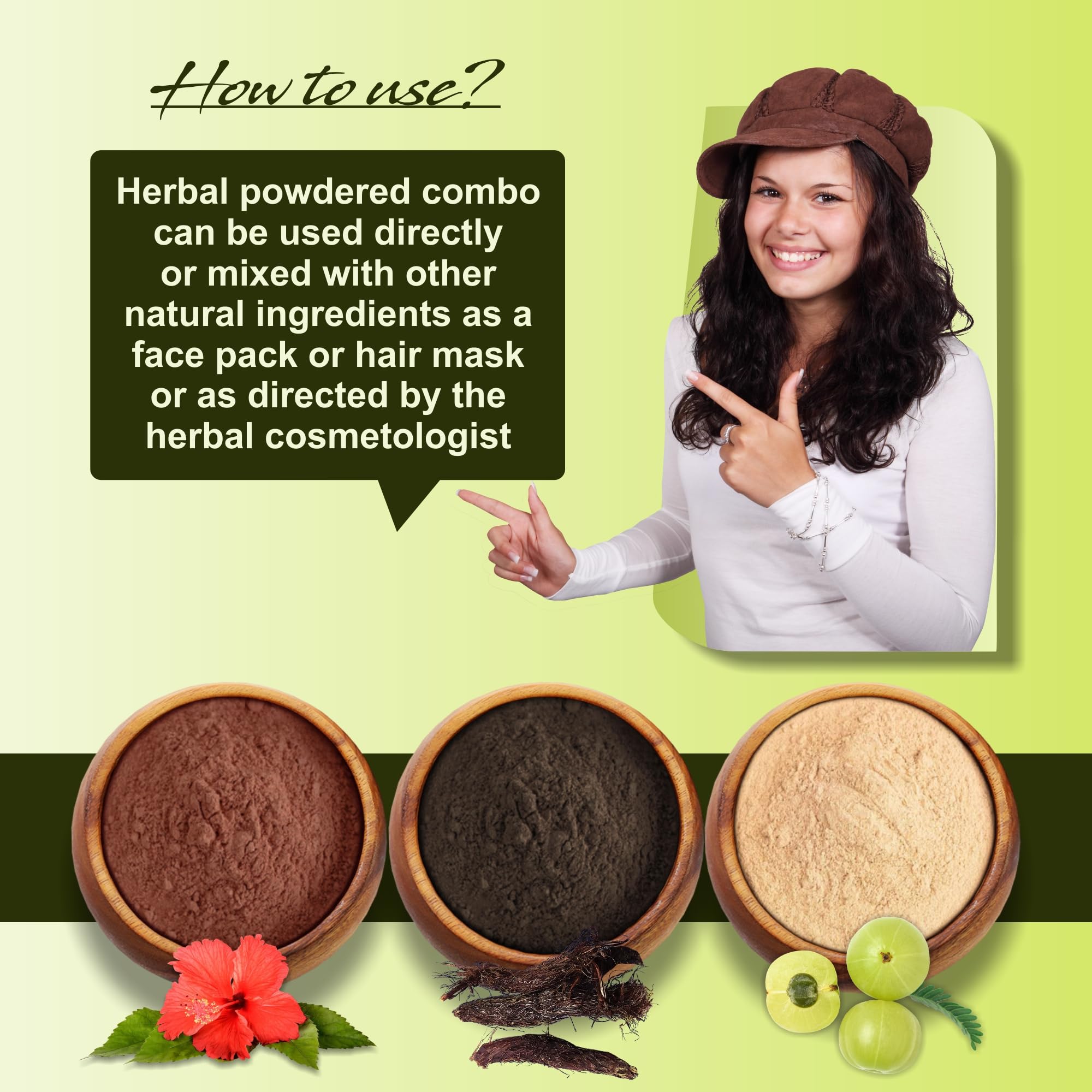 • Good for Skin and Hair: The Combo of Herbal powders is a combination of natural herbs that have been used since ages for a variety of skin and hair care regimens. The combo is loaded with naturally soothing rejuvenating moisturizing and conditioning prope