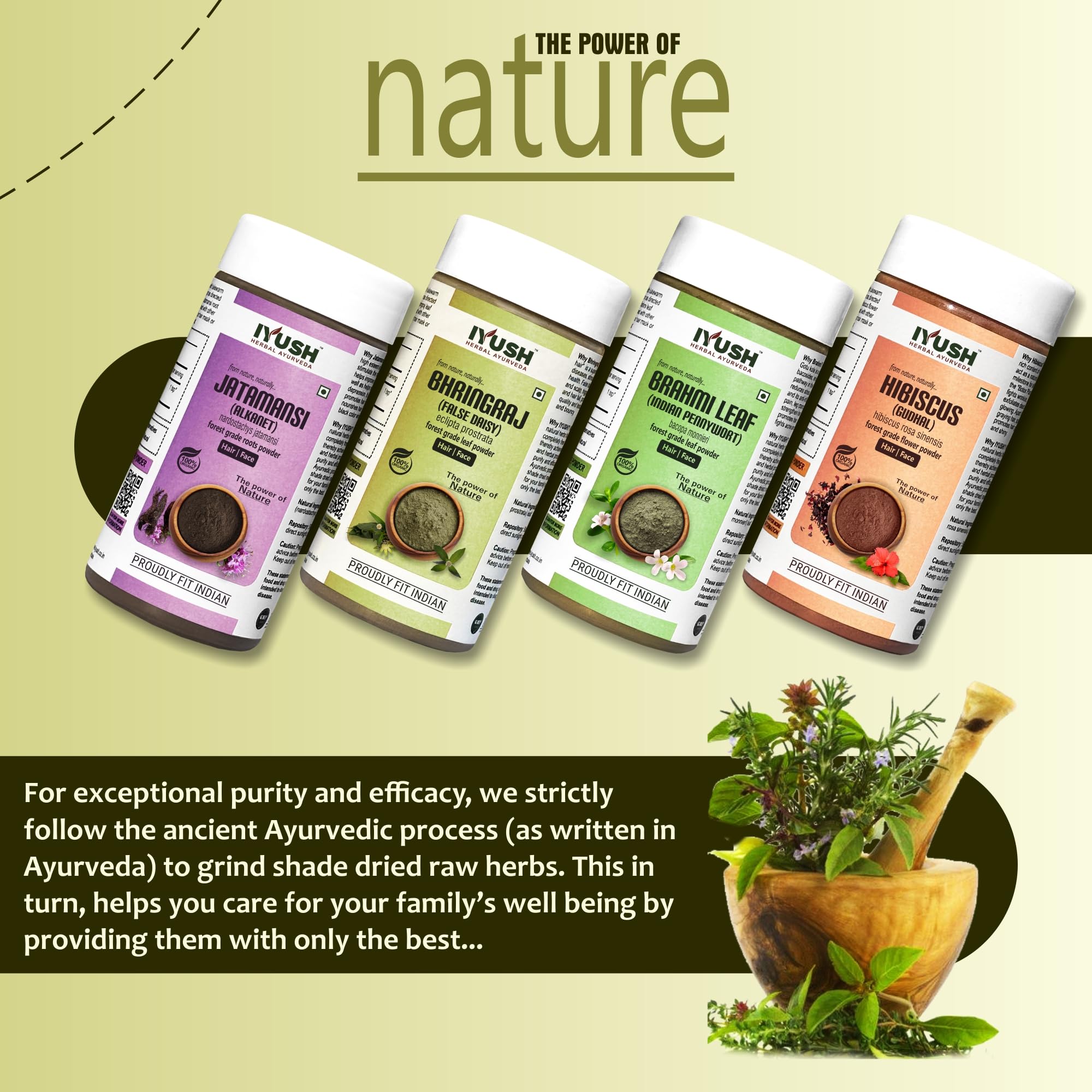 IYUSH Herbal Ayurveda Jatamansi Brahmi Bhringraj and Hibiscus Powder for Hair Growth - 100gm each