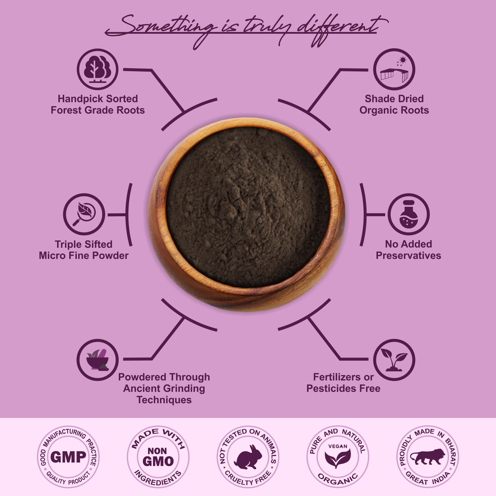 Made From Shade-Dried Jatamansi Roots: Jatamansi powder is an organic natural powder made from shade-dried wild forest grade Jatamansi roots which contain the highest active nutrients grown naturally without any harmful chemicals or pesticides or fertiliz