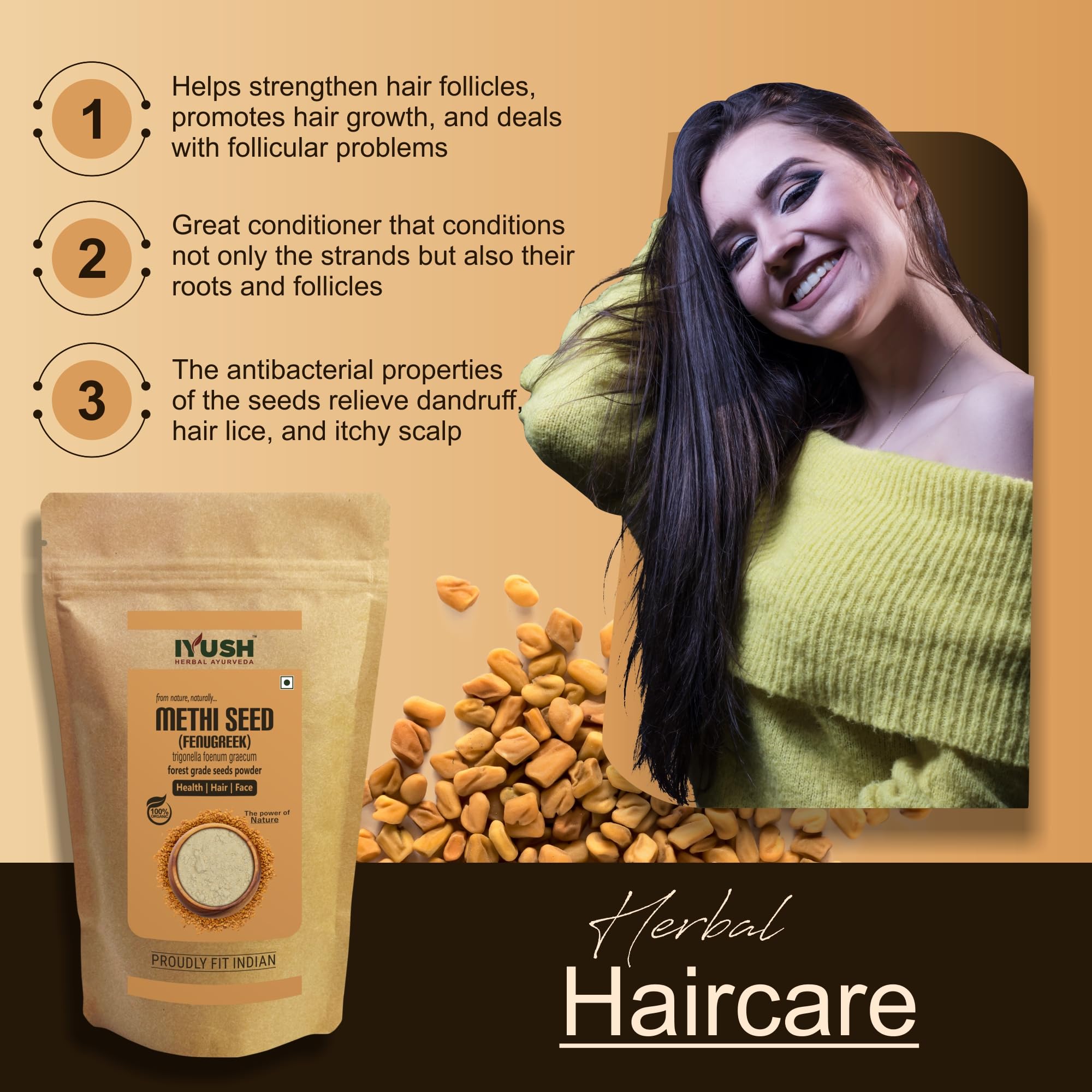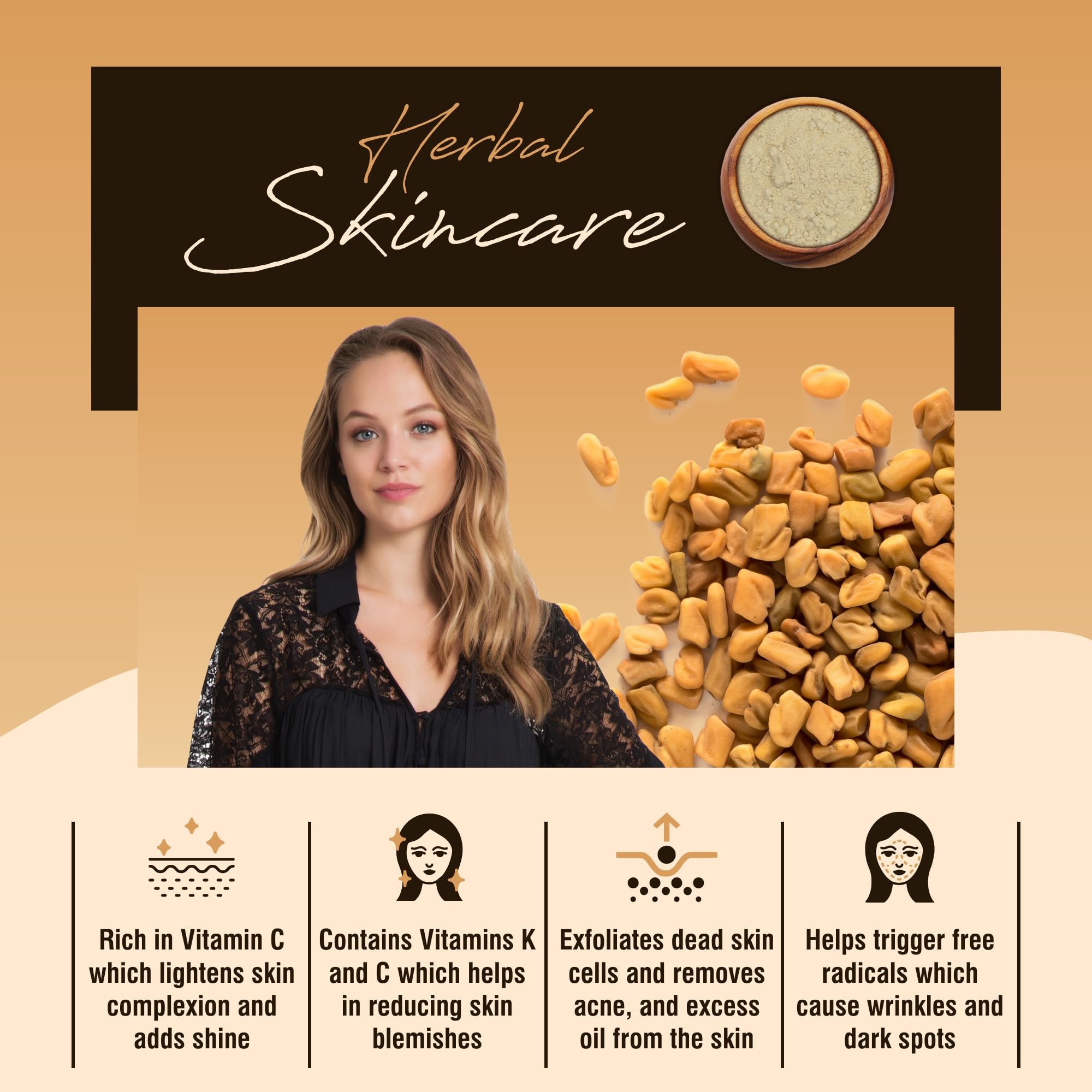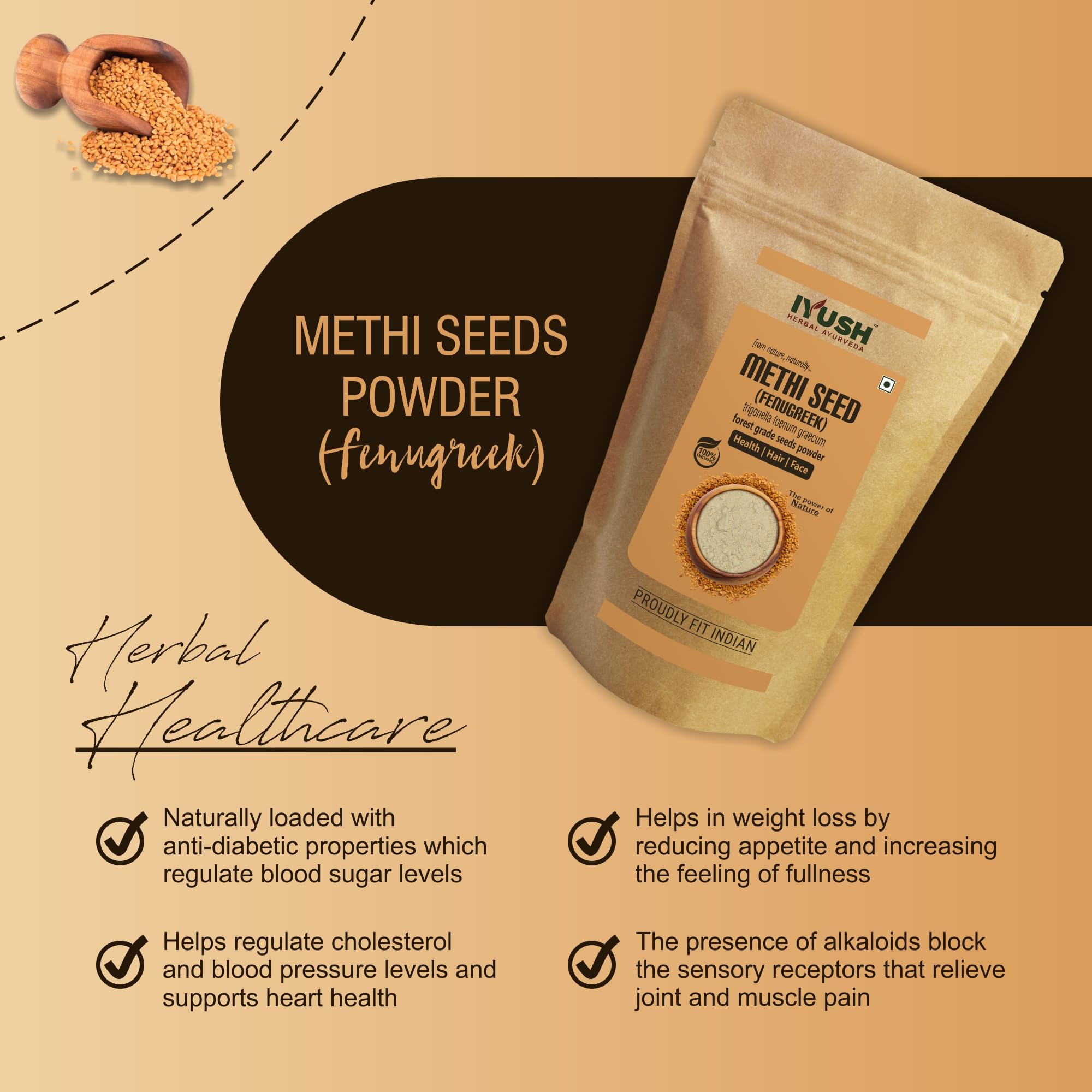 Methi also known as Trigonella foenum-graecum is a natural herb that has been used for centuries for numerous health skin and hair benefits. It is an organic natural powder made from shade-dried wild forest grade Fenugreek seeds that contain the highest active nutrients grown naturally without any harmful chemicals or pesticides or fertilizers.