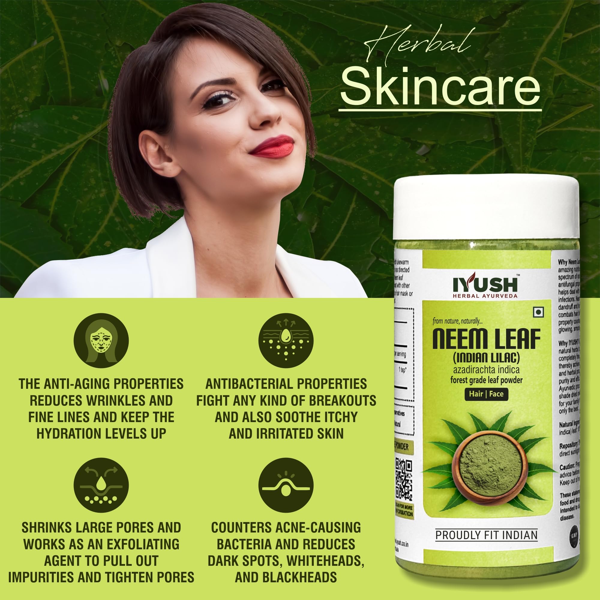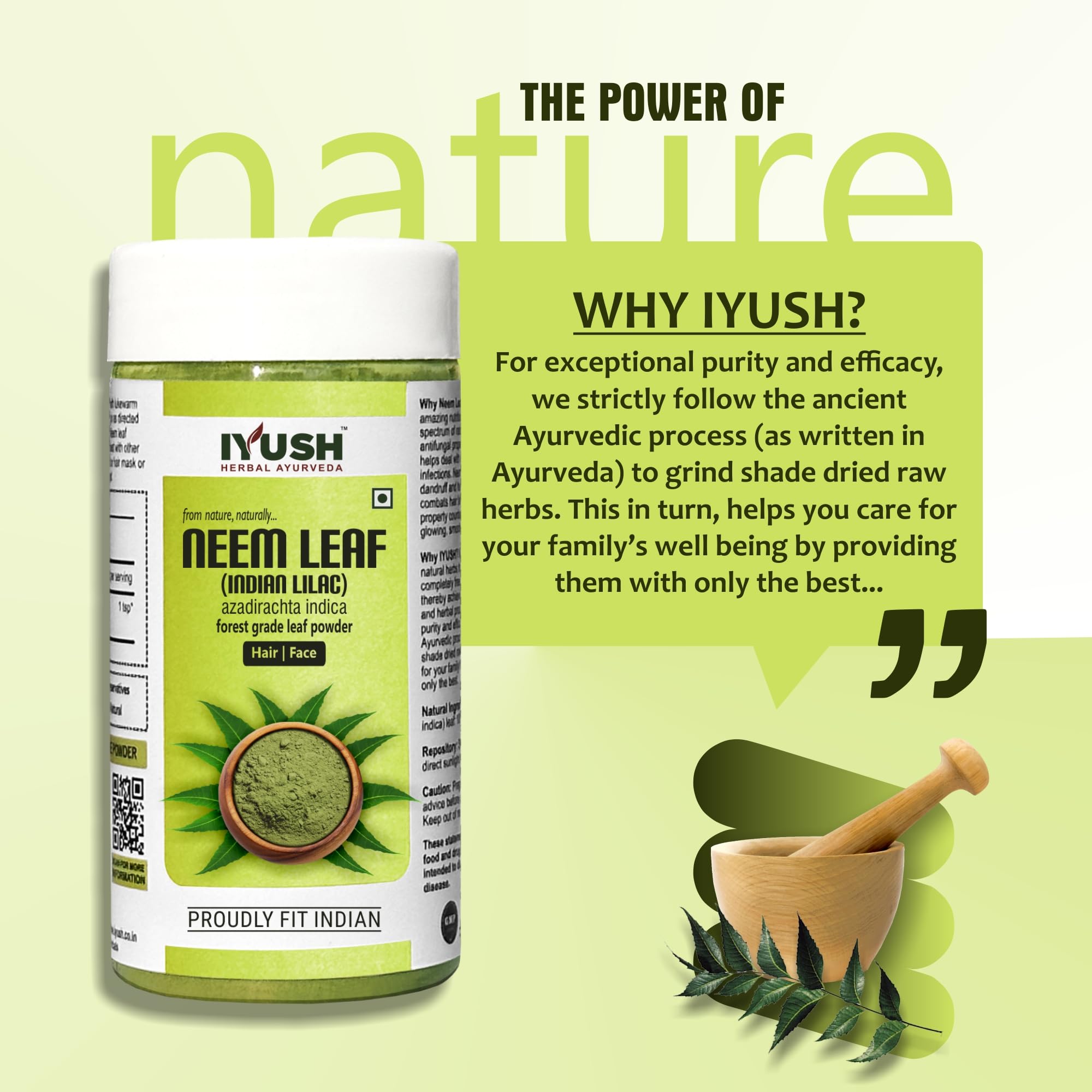 Iyush Herbal Ayurveda Neem Powder for Face Pack | Neem Powder for Eating | Neem Leaves Powder | Neem Powder for Hair | Organic Neem Powder for Skin |100gm
