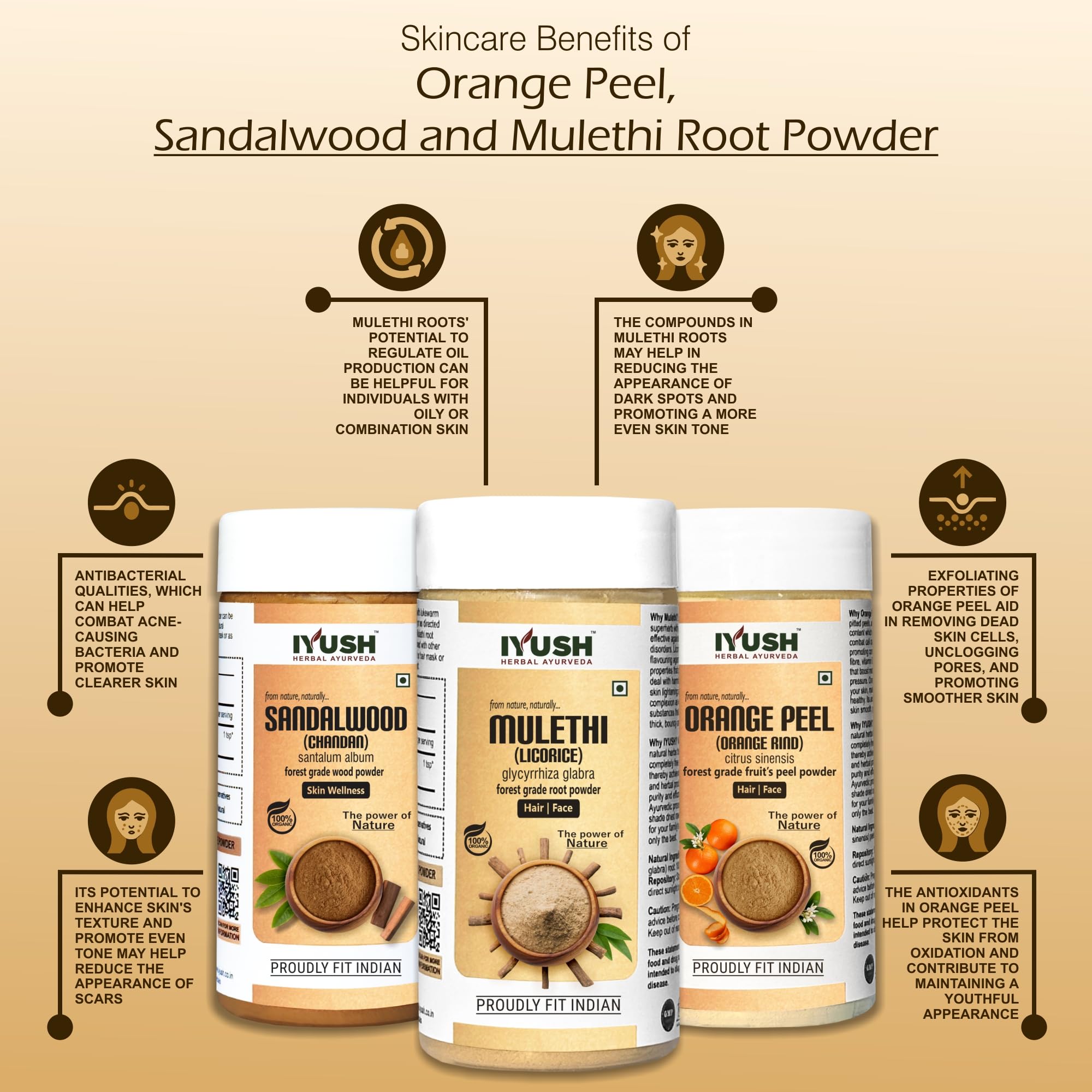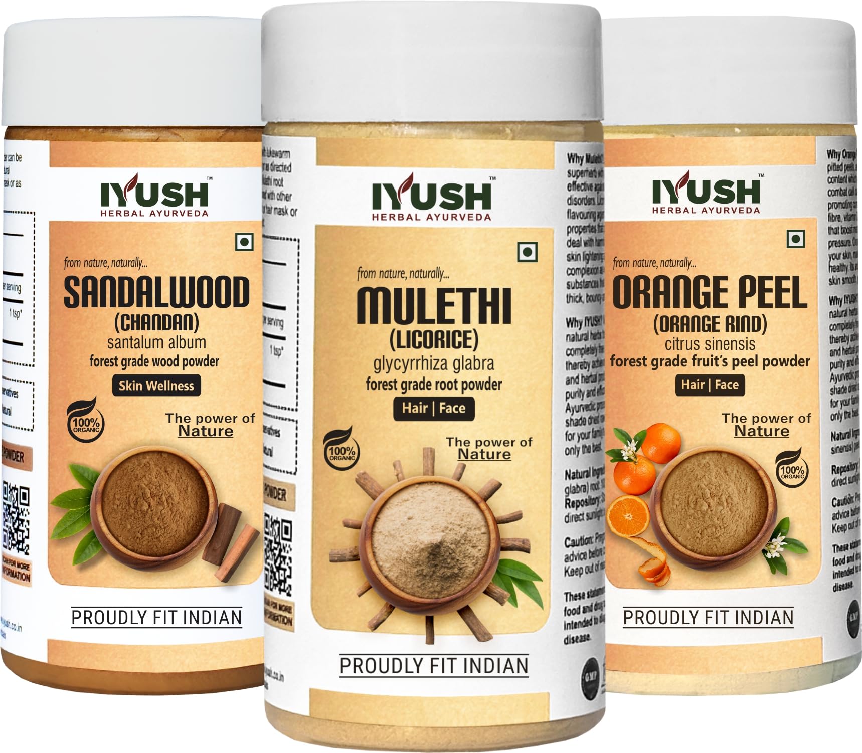 IYUSH Herbal Ayurveda OrangeChandanMulethi Combo Powder - 100gm each