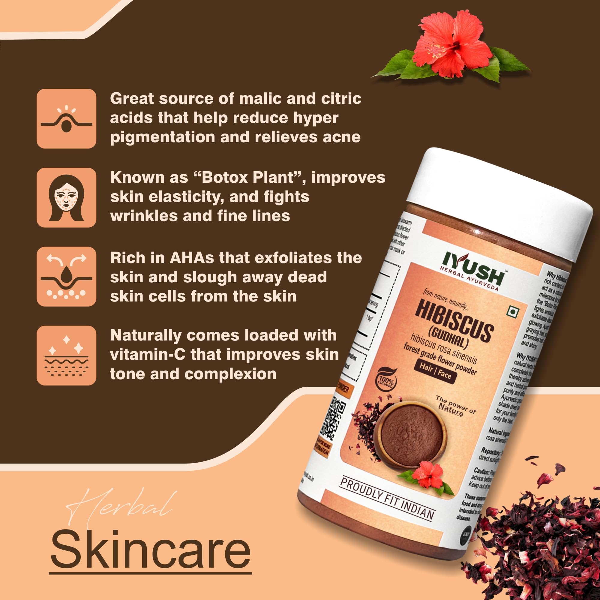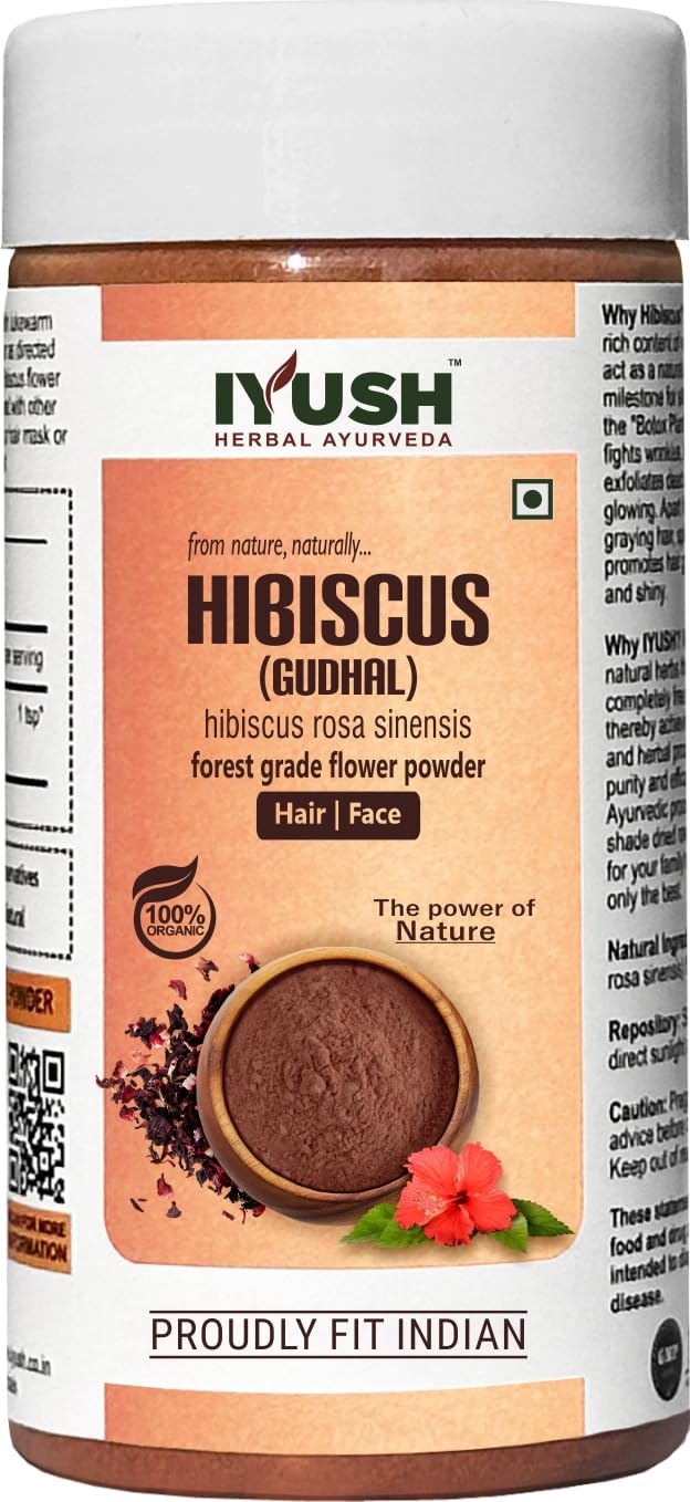IYUSH Herbal Ayurveda Organic Hibiscus Flower Powder For Hair Growth | Gudhal Flower/Hibiscus Rosa-Sinensis Powder For Hair And Skin Care | - 100gm