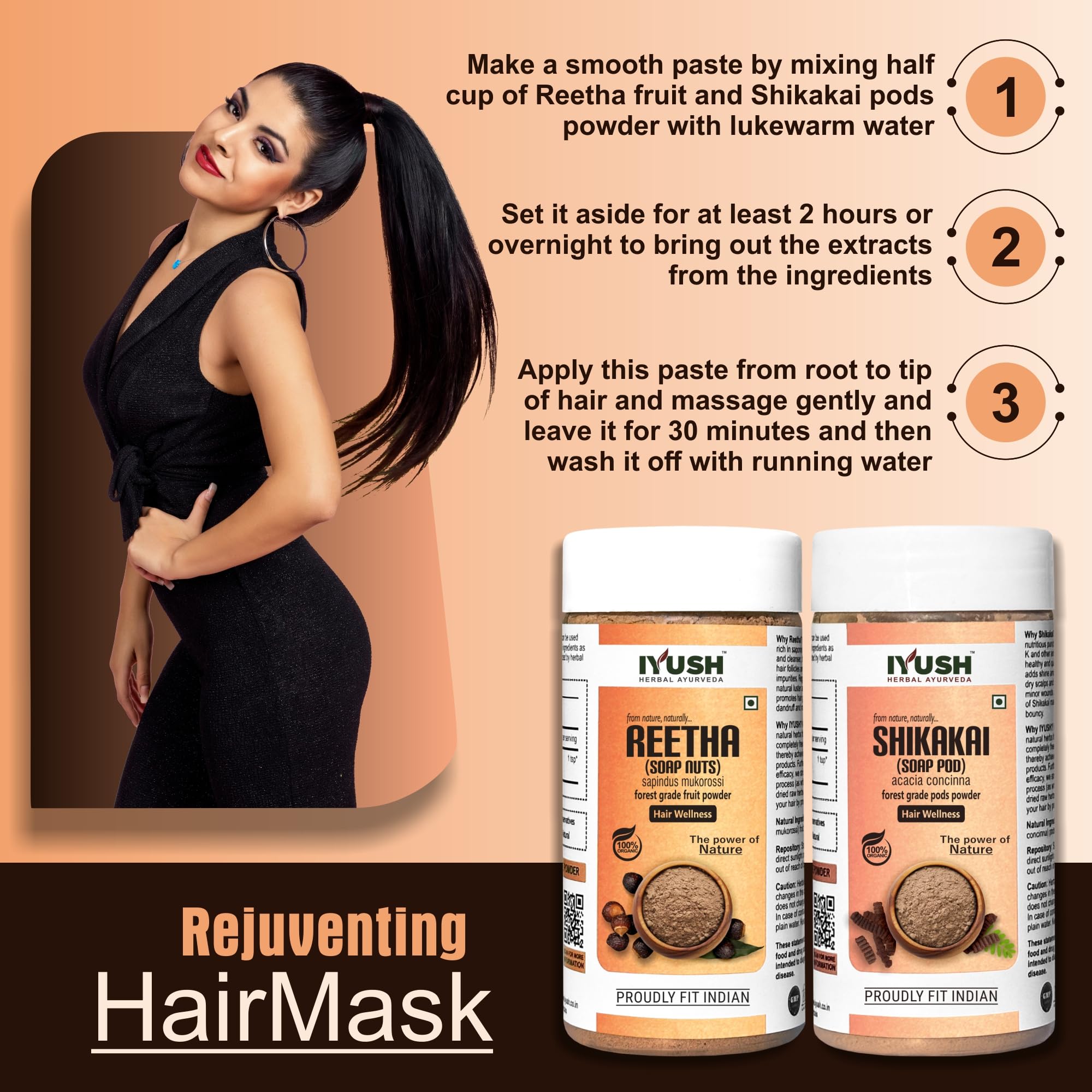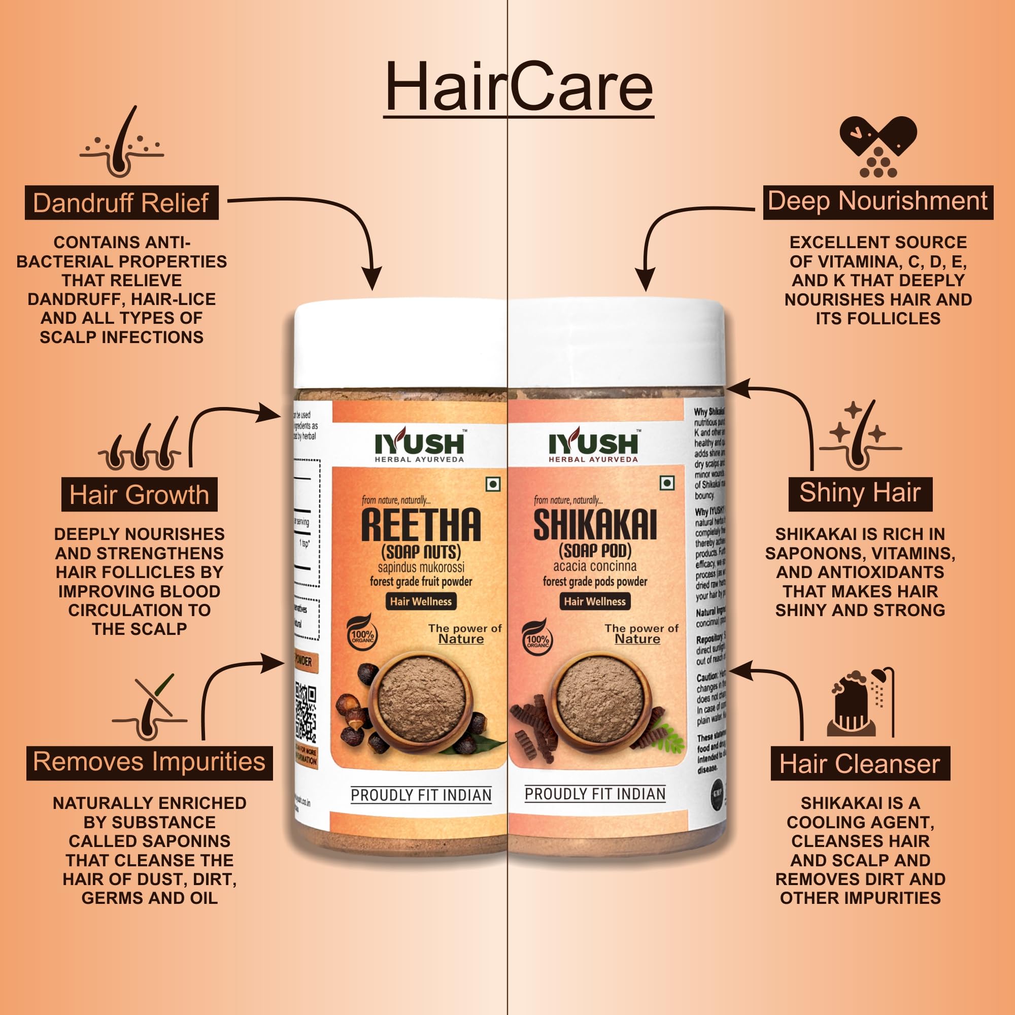 IYUSH Herbal Ayurveda Reetha Powder and Shikakai Powder for Hair Growth 200gm | Hair Mask for Dry and Frizzy Hair | Hair Volume Powder | Herbal Hair Wash Powder | Hair Powder | 100gm each