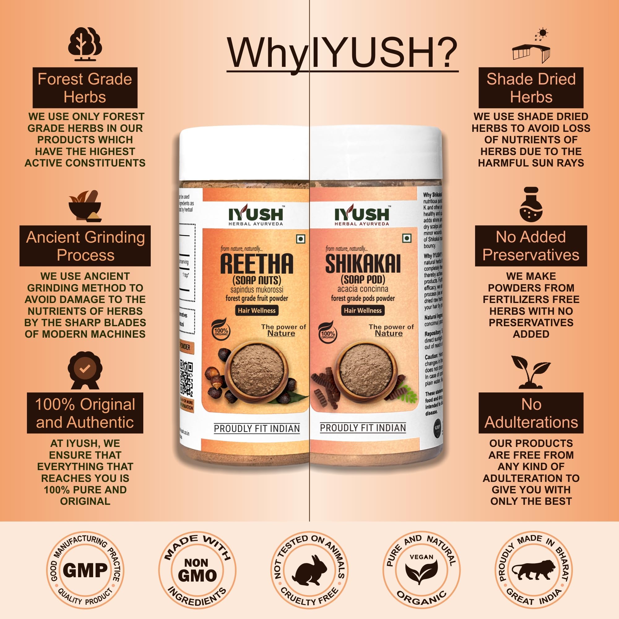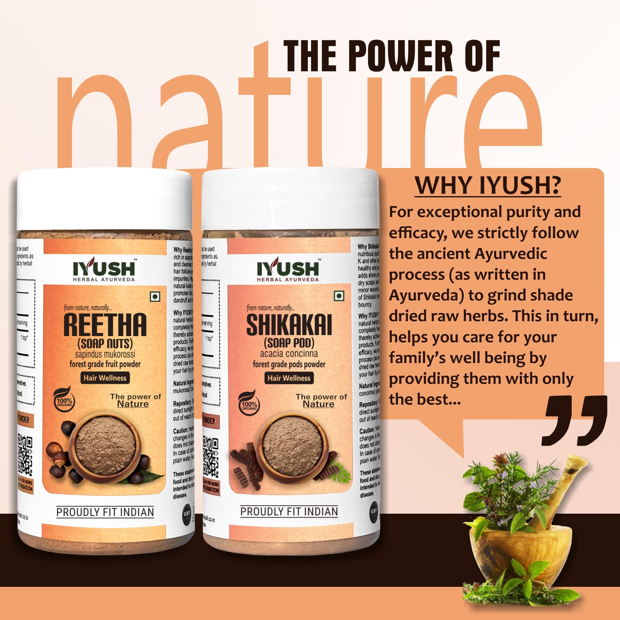 IYUSH Herbal Ayurveda Reetha Powder and Shikakai Powder for Hair Growth 500gm | Hair Mask for Dry and Frizzy Hair | Hair Volume Powder | Herbal Hair Wash Powder | Hair Powder | 250gm each