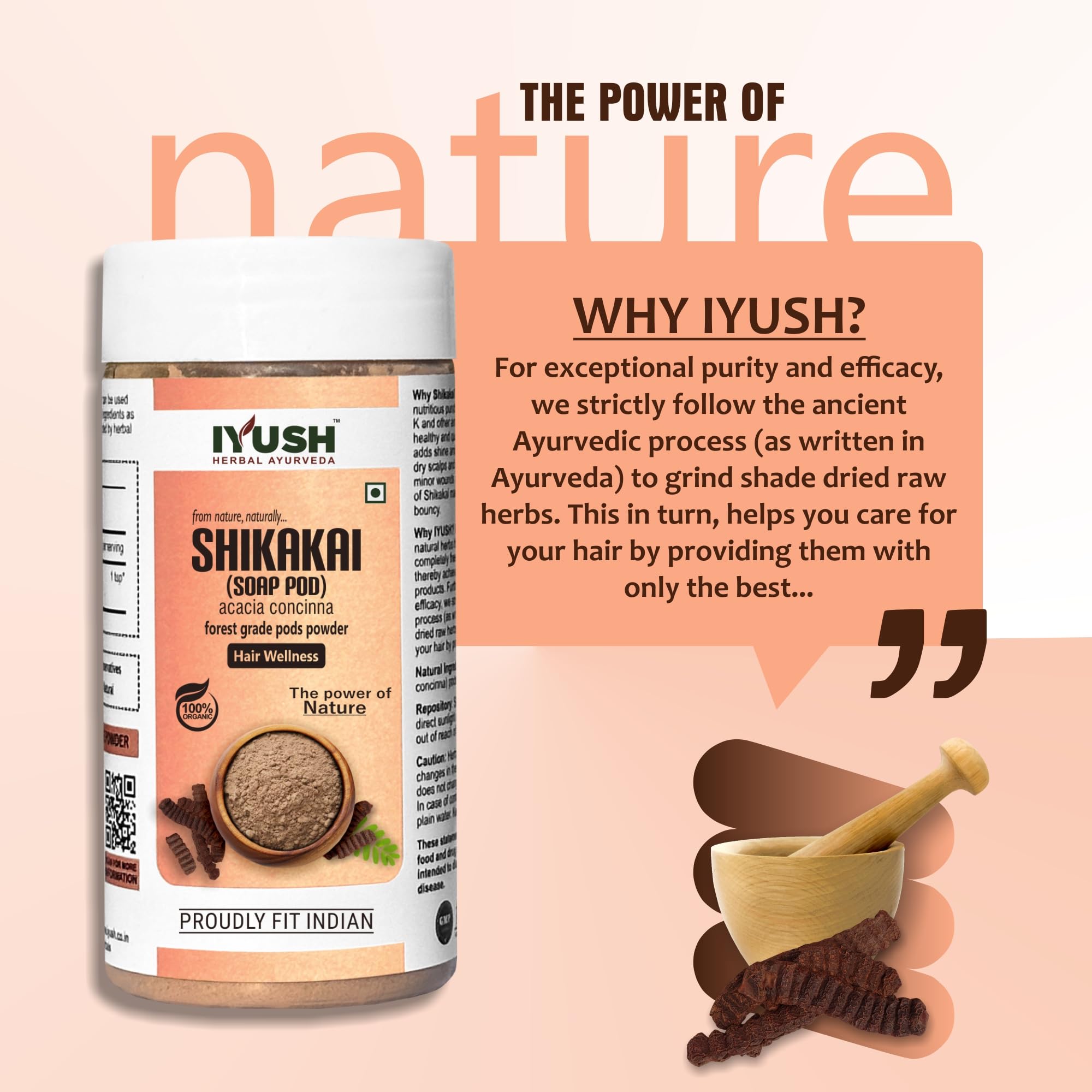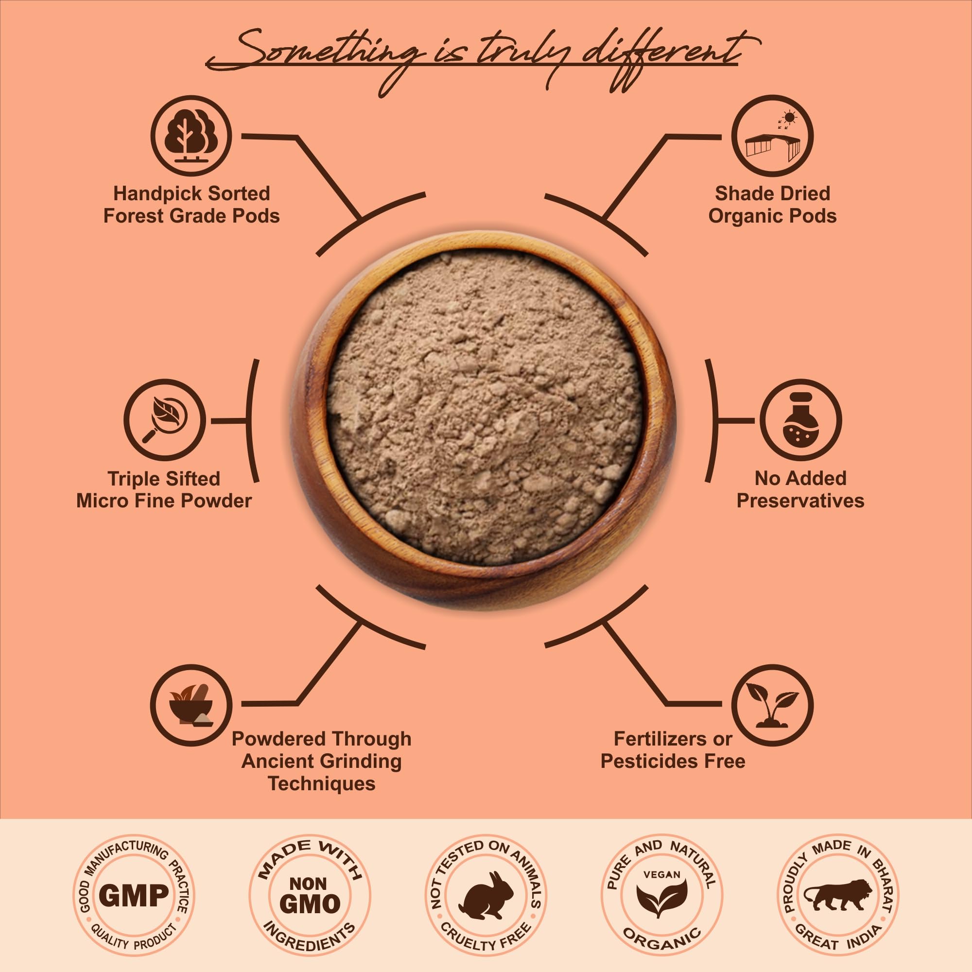 Shikakai also known as Acacia concinna is a natural herb that has been used for centuries in Ayurveda for numerous hair benefits. It is an organic natural powder made from shade-dried wild forest grade Shikakai pods that contain the highest active nutrients grown naturally without any harmful chemicals or pesticides or fertilizers.