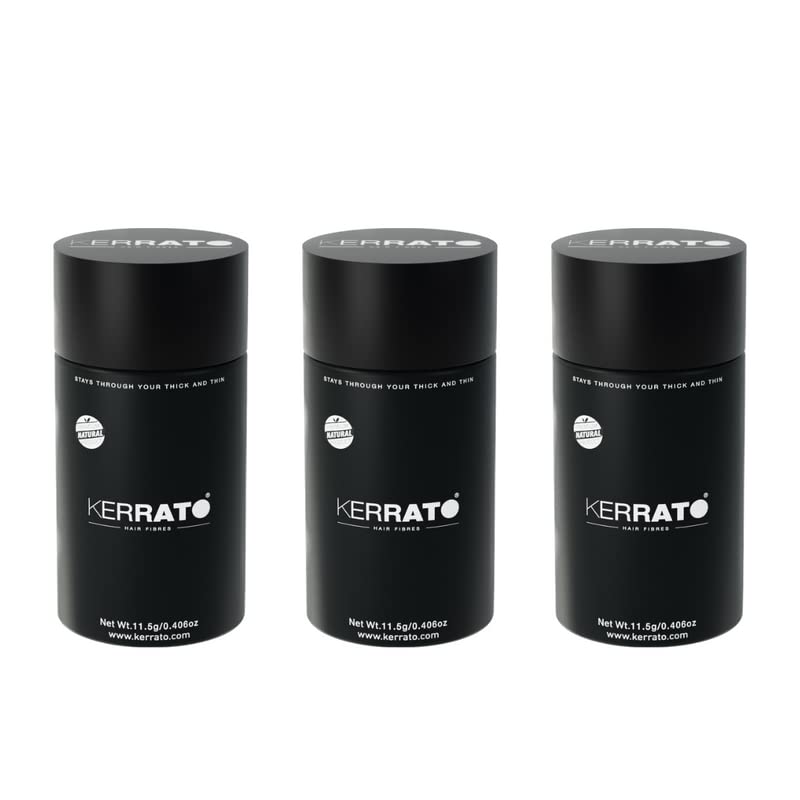 Experience the transformative power of Kerrato Hair Fibres for Thinning Hair. This pack of 3 each containing 11.5g of our revolutionary hair thickening fibres is designed to give you a fuller more natural look in just 10 seconds. Conceal hair loss with the world's safest hair fibres. With a decade strong in the market Kerrato Hair Fibres pride themselves on making your confidence shine through your hair. At Kerrato we have a dedicated team of formulators who deeply understand the emotional journey of hair loss. Our product is the result of careful research and rigorous testing to ensure we provide a safe and effective solution for your hair. Kerrato Hair Fibres are manufactured using patent-worthy mechanical technology without any harmful chemicals making them a safer choice for your scalp. Our unique formulation contains 100% natural keratin which seamlessly integrates with your existing hair. Unlike other cotton hair fibres that tend to clump and give an unnatural look our keratin fibres provide a smooth undetectable finish. This ensures your hair looks naturally thicker and denser boosting your confidence every day.