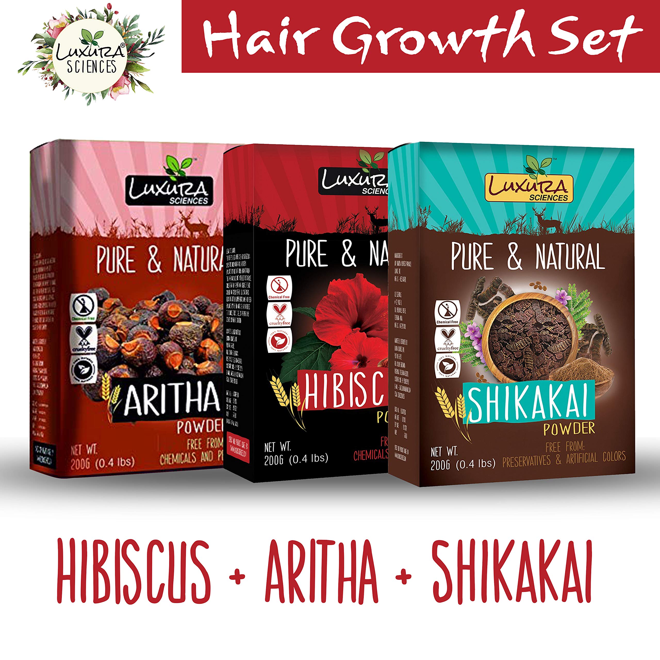 Luxura Sciences Natural Hair Care Set | 200g Each | Hibiscus Aritha & Shikakai Hair Powder Combo | Nourish Strengthen Cleanse & Revitalize Hair Naturally.