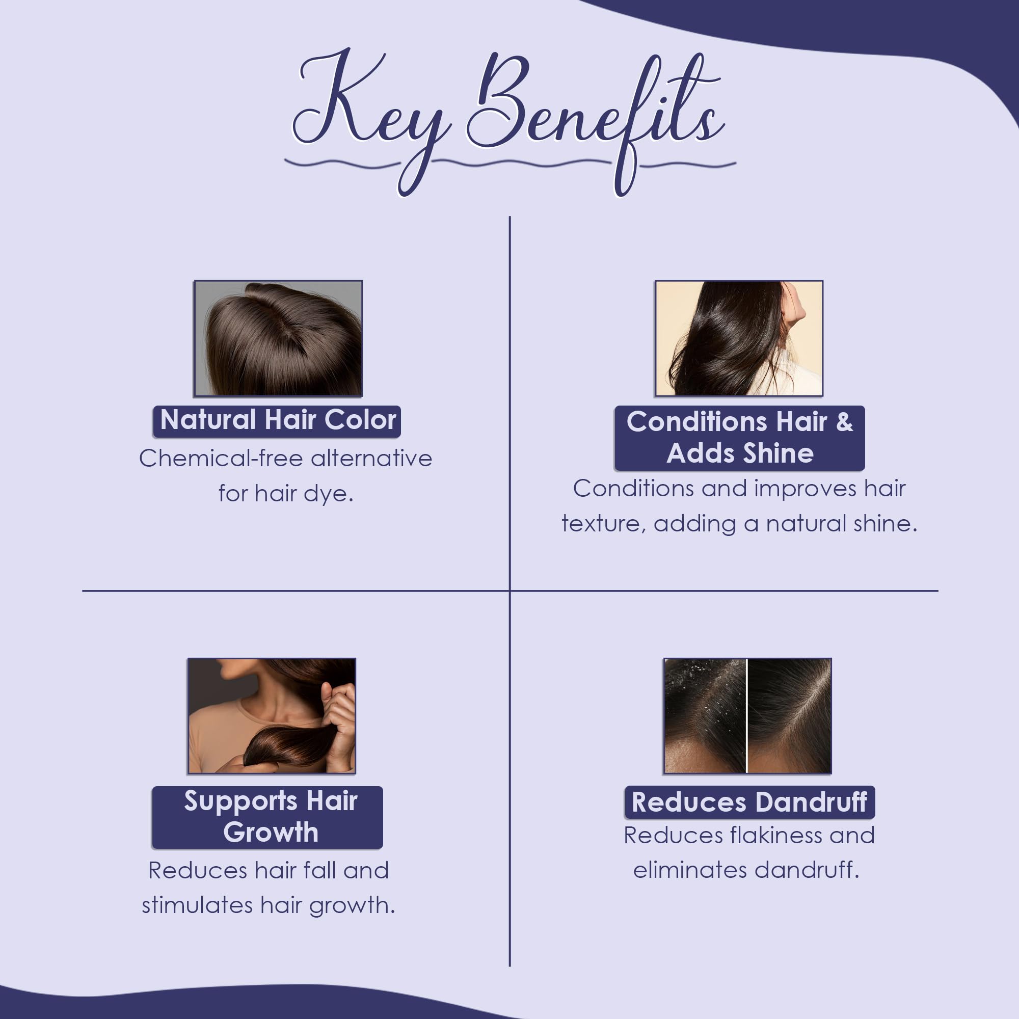 DEEP DARK HAIR COLOR: Used alone or with henna for beautiful black to dark brown tones - a plant-based alternative to synthetic hair dyes with results that look natural and gradually fade without harsh lines.