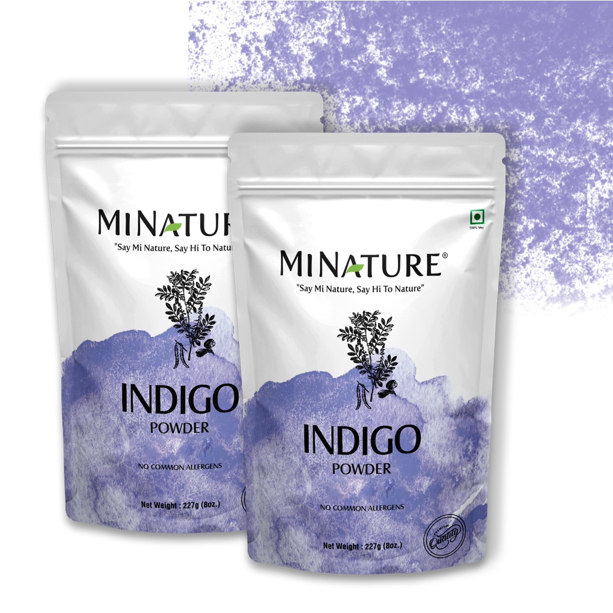 Mi Nature 100% Indigo Leaf Powder Pack of 2 (Each packet 227g (8oz) |Pure Herbal Tint for Rich Dark Hair Color |Natural Tinctoria Powder (Indigofera Tinctoria)
