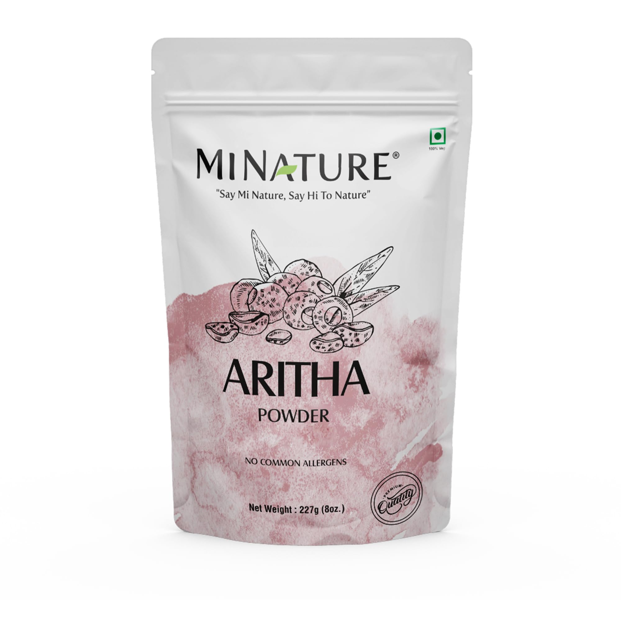 mi nature Aritha/Reetha Powder | Soapnut Sapindus Mukorossi For Silky Hairs | For Herbal Hair Care| Natural No Added Preservatives and Additives | Hair Conditioning adds Shine| 227gram