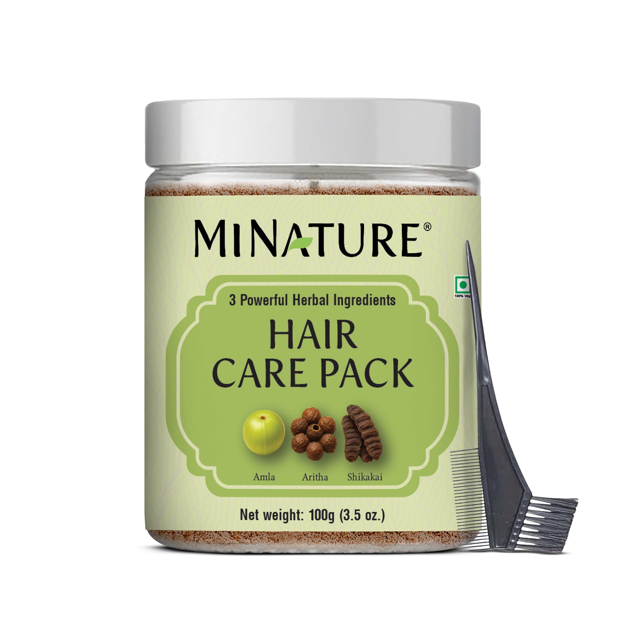 Mi Nature Hair Care Pack | 100g | Amla Aritha & Shikakai PowderMi Nature brings you a traditional herbal blend made with 100% pure and natural powders of Amla Aritha (Reetha) and Shikakai. These ingredients have been used for generations in natural hair care rituals and are valued for their gentle and effective properties.Key Features:100% Pure & Natural: Free from additives preservatives and synthetic chemicals. A clean plant-based formula for mindful hair care.Traditional Herbal Blend: Combines three time-tested ingredients Amla for scalp conditioning Aritha for natural cleansing and Shikakai for a soft smooth finish.Ideal for DIY Hair Masks: Perfect for mixing with water aloe vera or oils to create your own customized hair pastes and washes.Suitable for All Hair Types: Gentle enough for regular use by both men and women. Can be part of your weekly hair care routine.Resealable Pouch Packaging: Comes in a 100g zip-lock pouch to maintain freshness and convenience with each use.Responsible Sourcing: Mi Nature supports sustainable farming and eco-friendly practices in production and packaging.Important Note: Mi Nature's products are not intended to diagnose treat cure or prevent any disease.