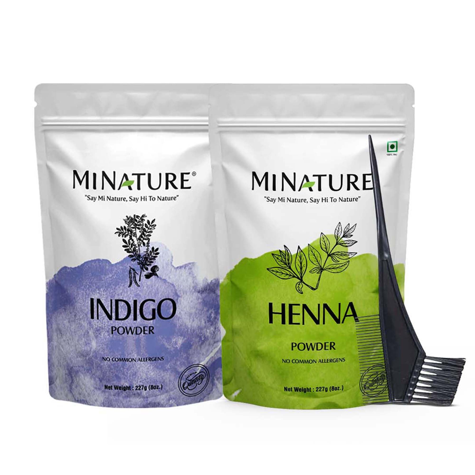 Experience the magic of natural hair coloring with our Combo Pack of mi nature Henna & Indigo Powder the perfect solution for those seeking safe and chemical-free hair color! Each pack contains 100g of pure Henna and Indigo Powder ensuring a wholesome hair care experience.Discover the brilliance of vibrant and shiny hair color that enhances your natural hair tones adding a touch of nature to your locks. Our Henna and Indigo Powder combo effectively cover grays giving your hair a fresh and youthful appearance.Not only does our Combo Pack offer stunning color but it also provides care for your hair. Bid farewell to frizzy and damaged hair as this magical blend works to smoothen and revitalize your tresses. Experience a transformation as your hair gains a lustrous and healthy shine.Say goodbye to harmful chemicals! Our Minature Henna & Indigo Powder Combo is formulated with pure ingredients making it a safe choice for your hair coloring needs. Embrace the beauty of nature's gifts and enjoy a hair coloring experience free from synthetic additives.Experience the assurance of high-quality ingredients in every packet. Our commitment to excellence ensures reliable and effective results with each application. Achieve the hair color you desire with confidence and trust in the authenticity of our product.Discover the joy of natural hair color with our Combo Pack of Mi nature Henna & Indigo Powder. Embrace the magic of nature and flaunt your beautiful healthy and chemical-free hair. Transform your hair coloring routine into a luxurious self-care experience with our premium blend.