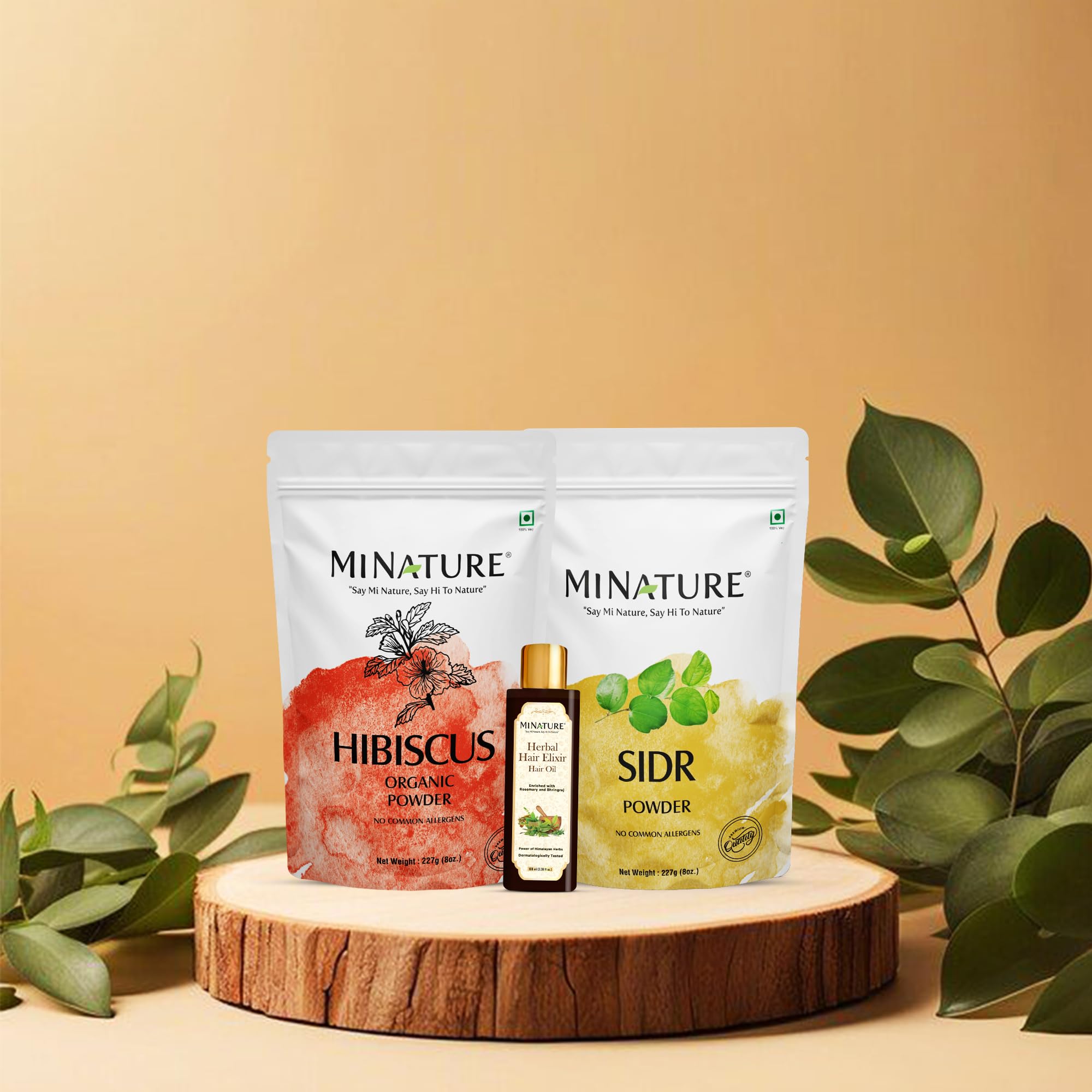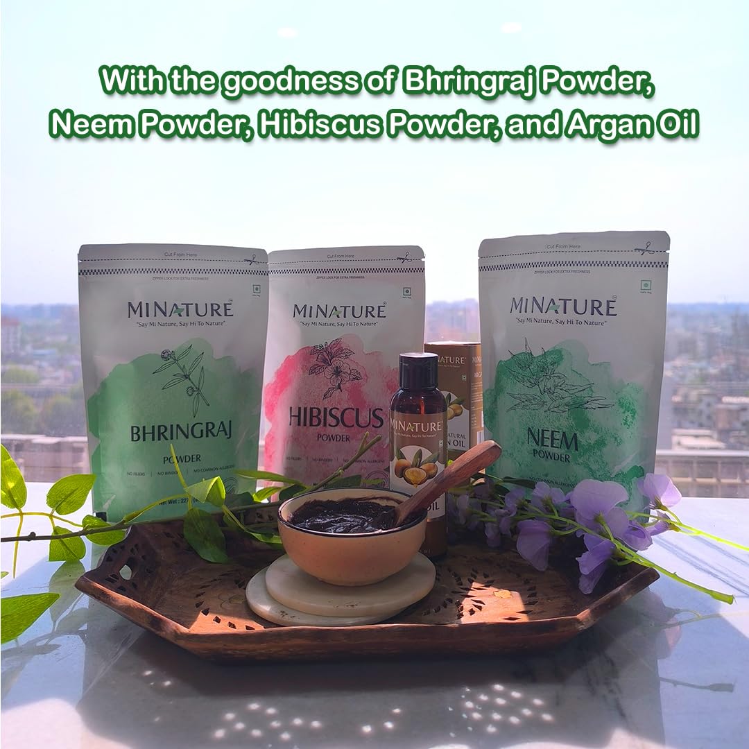 ðOily Scalp Control ComboâTake control of oily scalp issues with our comprehensive Oily Scalp Control Combo. Formulated with potent natural ingredients this combo includes four essential products to effectively manage excess oil production in your scalp.âBhringraj & Neem Powders work together to clarify the scalp and control excess oil production while Hibiscus Powder adds moisture. Argan Oil deeply hydrates the scalp and hair leaving it feeling soft and manageable.ðHow to use Oily Scalp Control Comboð:â¶Mix equal parts of Bhringraj Neem and Hibiscus Powder with yogurt and water to create a smooth paste.ð¹Apply the Mask:â¶Section your hair and apply the mask evenly to your scalp and hair massaging gently.â¶Leave it on for 30 minutes to 1 hour.ð¸Rinse Out:â¶Rinse the mask out with lukewarm water and shampoo if needed.ð¹Apply Argan Oil:â¶Apply the Argan oil and wash it off the next morning.ð¸Frequency:â¶Use this combo once a week or as needed for best results