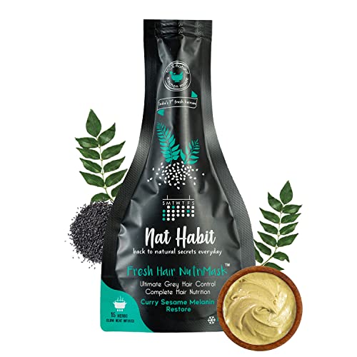 Nat Habit Curry Sesame NutriMask Fresh Hair Mask For Grey Hair, Conditioning, Smoothening, Strengthen & Shine, Suitable For All Hair & Scalp Types (Pack of 2 x 40 gm)