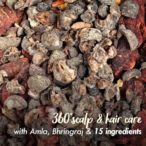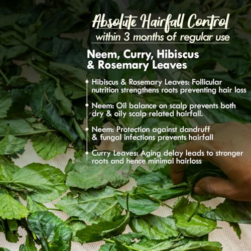 • Hibiscus Leaves -Hibiscus is rich in vitamins and minerals that stimulate hair follicles helps healthy hair growth and reduces hair loss. Neem Leaves - Neem's antifungal properties make it effective in reducing dandruff and maintaining a healthy scalp. Cu