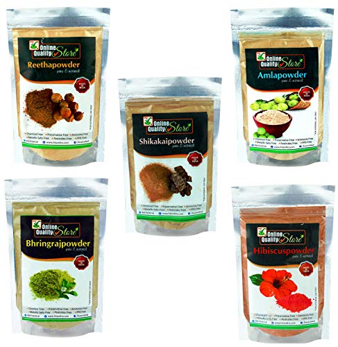 Online Quality Store Amla Reetha Shikakai Bhringraj and Hibiscus Powder for Hair 400gThis handmade powder is best hair remedy. This product is suitable for all hair types for making hair strong for dry brittle hair for sticky oily hair for hair's shine for thick growing hair for soft and silky hair. Both Mens and women's can use. Apply on hairs and you will see good results.It lessens dryness and roughness reduces hair fall and make your hair shinier. It adds ricochet to your hair and is enhanced with the integrity of Shikakai which can likewise lessen untimely turning gray and control an irritated scalp. The shampoo gives enormous foams that in the end reduce out the oil dirt dust off the scalp and the hair.