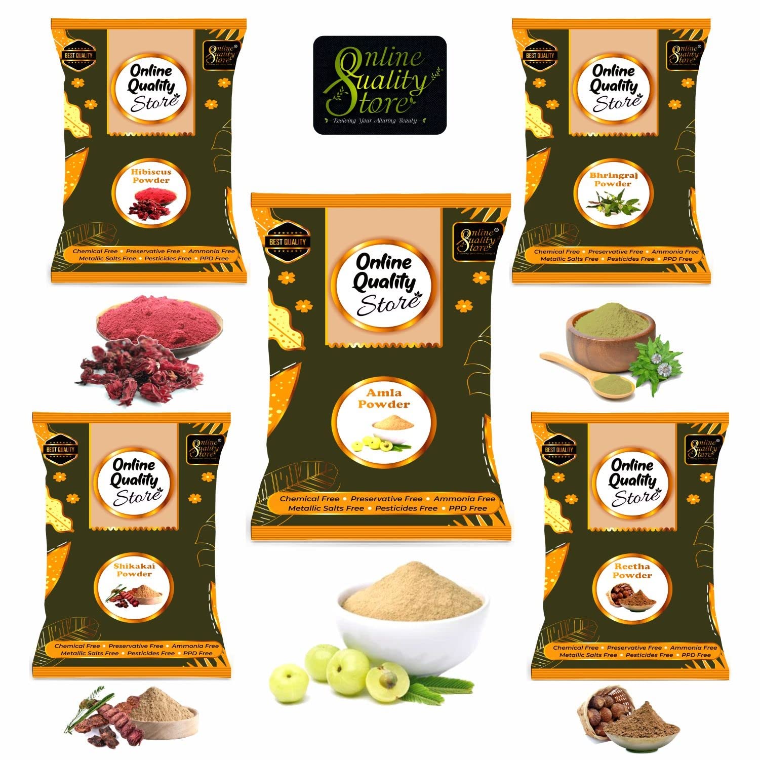 Online Quality Store Amla Reetha Shikakai Bhringraj and Hibiscus Powder for Hair |hair mask for dry and frizzy hair |hair pack powder |hair pack combo |hair mask for smoothening hair1400g