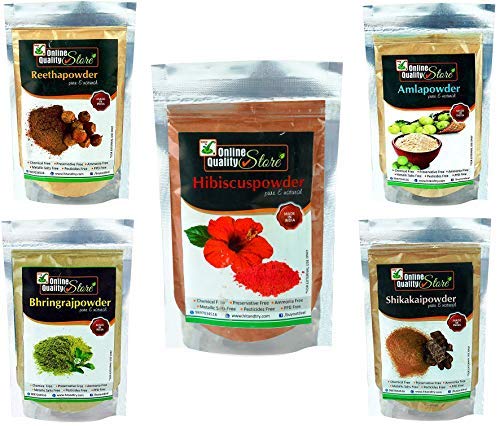 Online Quality Store Amla Reetha Shikakai Bhringraj and Hibiscus Powder for Hair |hair pack powder combo |hair care products |Aritha|Ritha|Soapnuts |Indian Gooseberry|gudhal |gudhal fool powder |organic Bhringraj(Pack of 5 Total 1900g Pack)