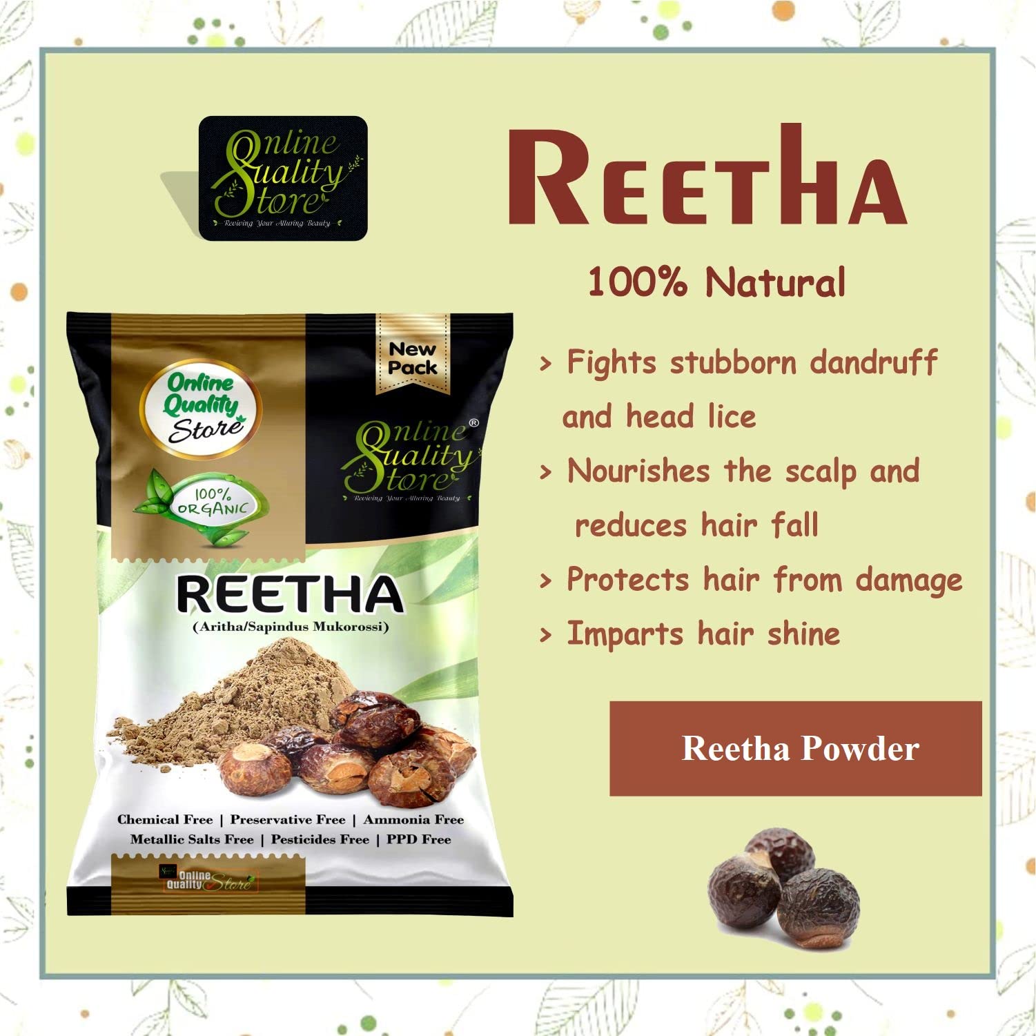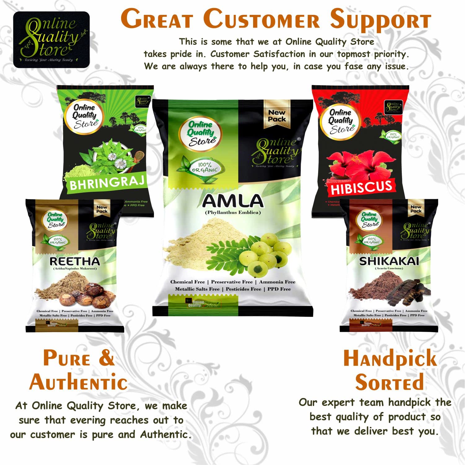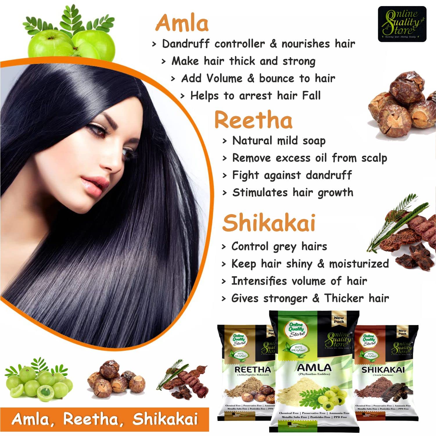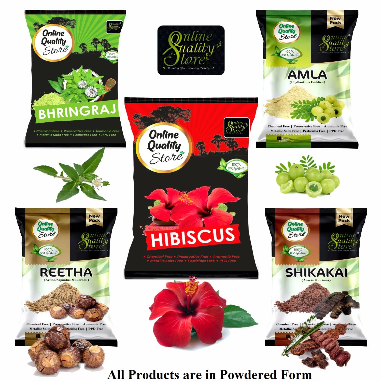 Online Quality Store Amla Reetha Shikakai Bhringraj and Hibiscus Powder for Hair |hair pack powder combo |hair care products |natural products for hair |natural products for skin|products for hair(Pack of 5 Total 900g Pack)