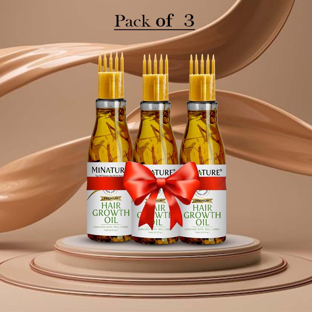 MINATURE's Pack of 3 Hair Oilmi nature's Pack of 3 Hair Oil designed to revolutionize your hair care routine. Experience the power of nature's bounty with a blend of Pure All in one Coconut Almond Olive and Til Oil meticulously crafted and revitalize your hair from root to tip.Key Features: Enriched with Live Herbs our unique formula infuses your hair with the goodness of nature drop is a potent concoction of botanical wonders carefully selected to provide holistic care for your precious locks𧪠Free from Harmful Chemicals our hair oil prioritizes you. Say goodbye to harsh additives and embrace a natural approach to hair without compromising on quality.Non-GMO Vegan Gluten-free: We believe in providing quality products that align with your lifestyle. Our tablets are non-GMO Vegan and Gluten-free ensuring everyone can enjoy their benefits.With a convenient 110ml size our Pack of 3 Hair Oil ensures that you have an ample supply to indulge in luxurious hair care whenever you desire. Elevate your hair care routine with mi nature and unlock the secret