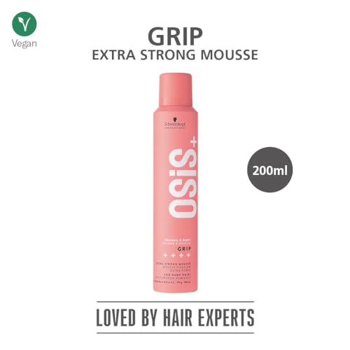 Schwarzkopf Professional OSiS+ Grip Extra Strong Hair Styling Mousse For Men & Women | Long-Lasting Hold, Volume & Natural Shine | Frizz Control & Lightweight Formula | Vegan-Friendly (200 ML)