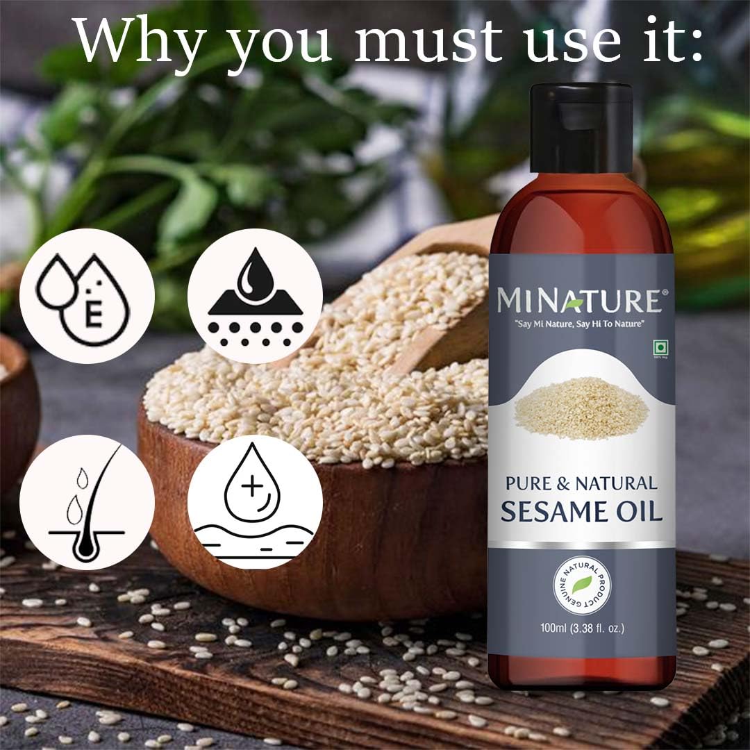 Sesame Oil by mi nature | Gingelly (white til/sesame) | Edible &r Hair care| Light & Non-Sticky | Plant Derived | No artificial colours flavor additives or preservatives |100ml (Pack of 2)