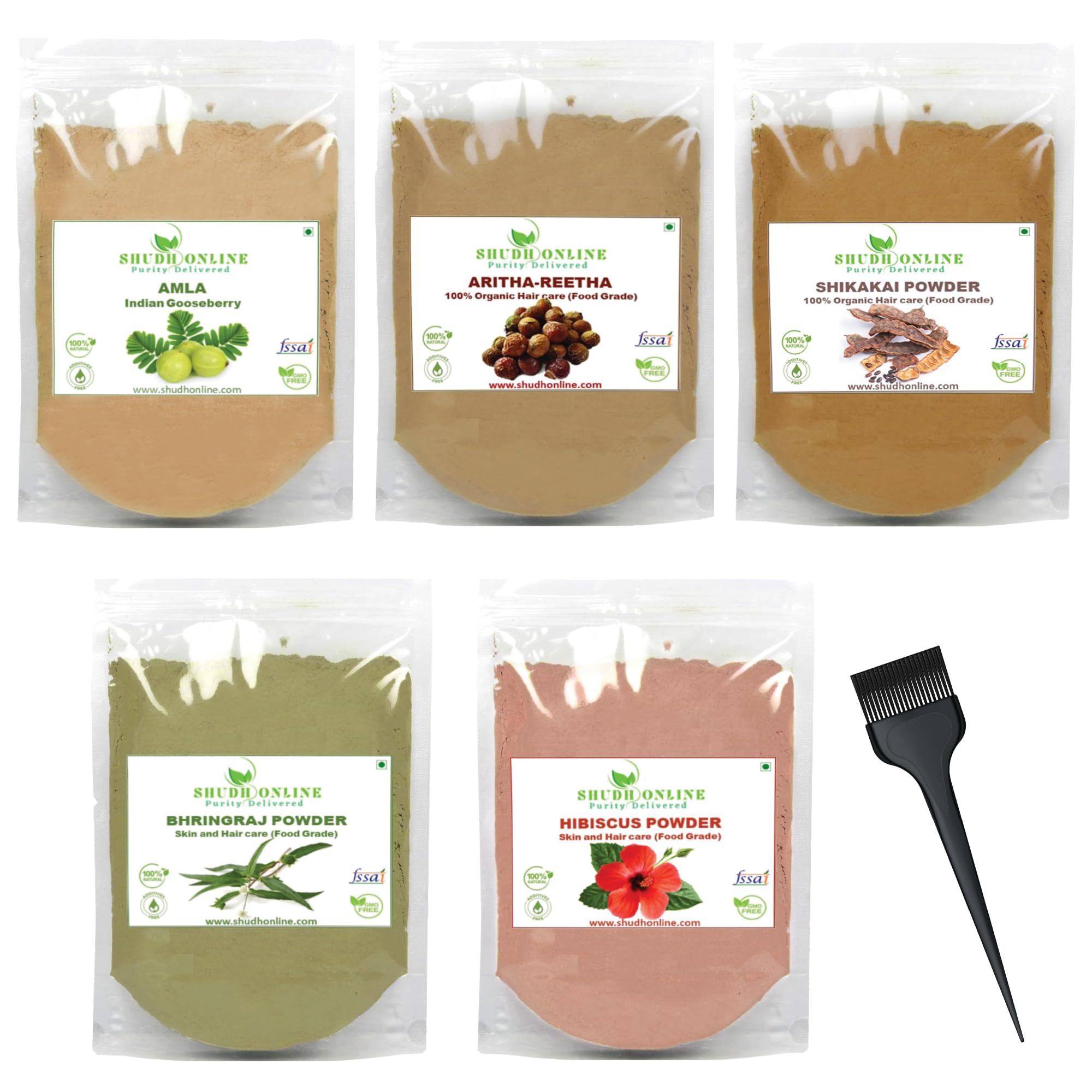 Shudh Online Hair Care Combo is Herbal ( 100 % natural ) Product. It contains Amla Reetha Shikaki & Bhringraj & hibiscus Powder. Bhringraj Powder is an important herb for hair care. Shudh Online Bhringraj Powder s the hairmakes them smooth and silky. Bhringraj Powder slows down the greying and balding process of hair Bhringraj Powder when used regularly darkens the hair colour. Weekly Hair Pack: Mix Bhringraj Powder With Amla Reetha Shikakai powders .This works a brilliant hair tonic.