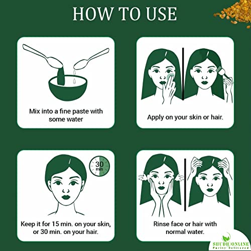 Shudh Online Methi or Fenugreek powder for hair and skin is 100% certified organic powder. Fenugreek seeds are also known as methi in Indian Homes and are a great source for hair nourishment. Hair nutrifies from deep within to boost the health kicks out the dandruff and dryness adapt the smoothness and lustrous shine. Fenugreek extract powder works within the system to eliminate all bad particles from the body. It is also known as methi seeds fenugreek seeds methi dana methidana fenugreek seed powder menthi powder fenu fiber fungreek meethi seeds Kasoori methi Kaaindha vendhaya ilaigal Menthiyam Vendhayam Methi ke dane Menthulu Mathi Maithi. Shudh Online products are selectively sourced with great emphasis on purity and authenticity and are 100% natural ayurvedic products. We don't add any preservatives or additives in the product and using our product will get you closure to nature.
