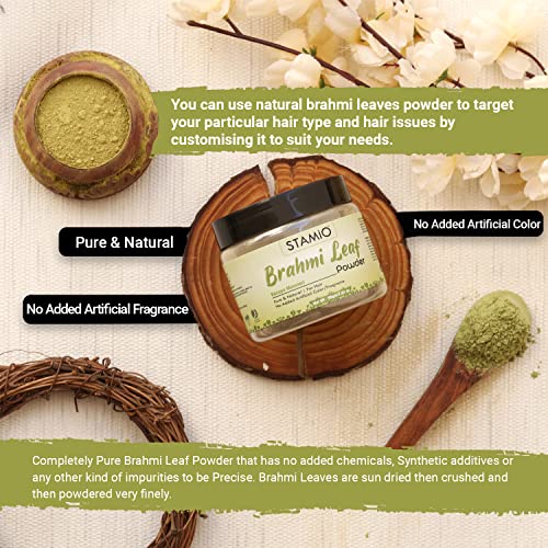 STAMIO Brahmi Powder for Hair Care Pack Mask DIY | Sun Dried Bacopa monnieri Leaves/Leaf | Suitable For All Hair Types Men & Women | In Jar - 80 gm