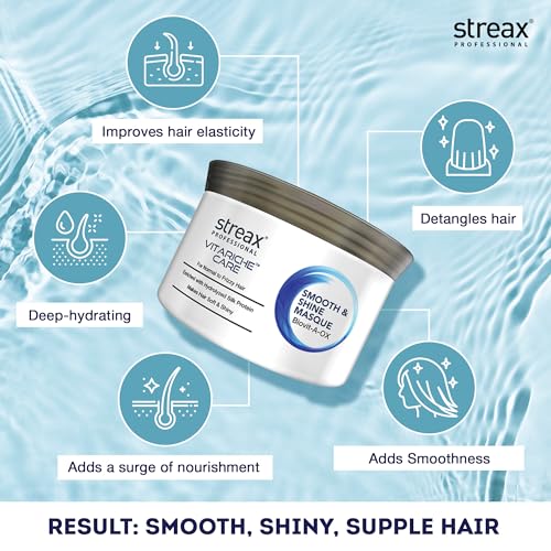 Streax Professional Vitariche Care Smooth And Shine Masque, Fresh Fragrance For Dry Hair Type, 200G,1 Count